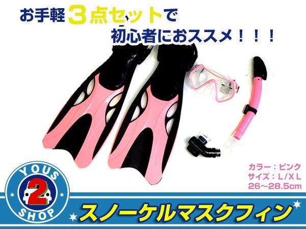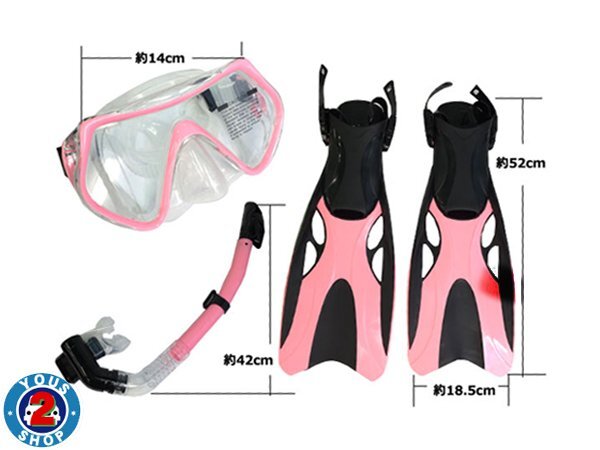 送料無料 スノーケル&マスク&フィンセット ピンク 大人用 L/XL