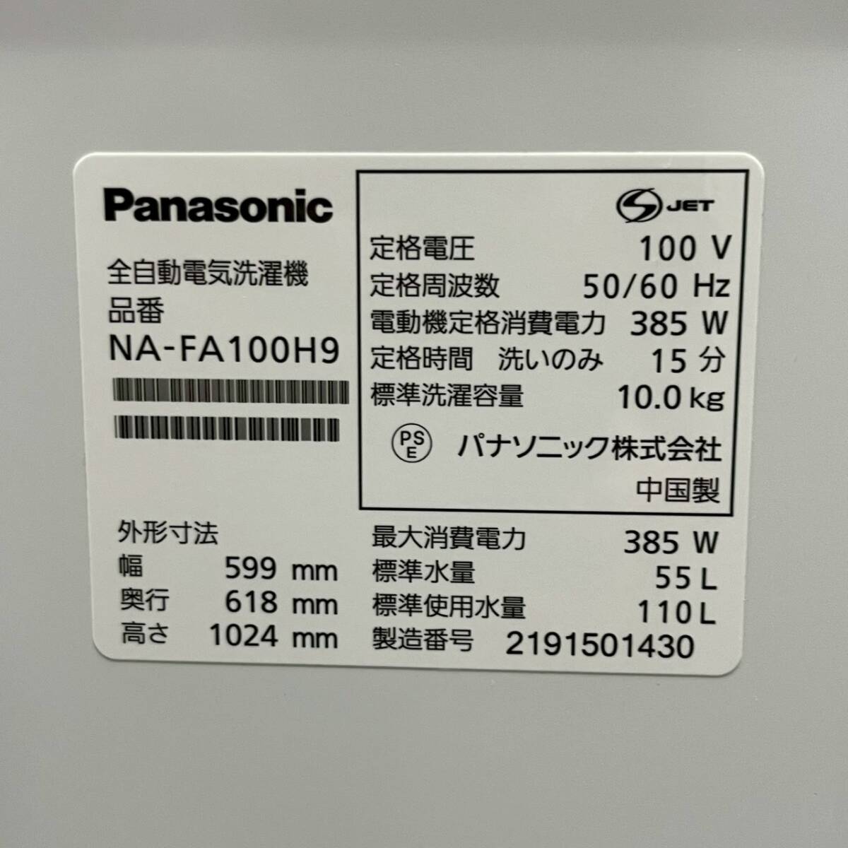 ・【Panasonic】 パナソニック 全自動電気洗濯機 NA-FA100H9 動作確認済み 2021年製 10kg 洗濯機 生活家電 A0923
