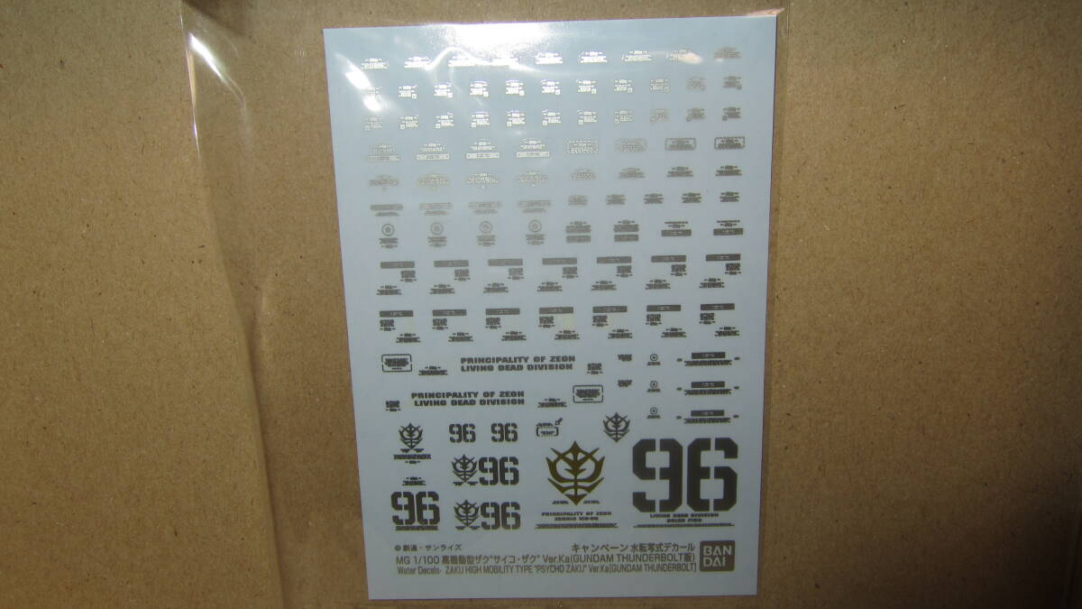 プレミアム デカールのみ◆ガンプラMGサイコザクVer.Ka1/100サンダーボルト