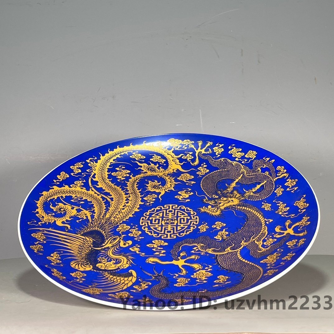 磁器 五彩観賞皿 竜鳳皿 置物 磁器 中国陶磁 海外還流 清 中国美術