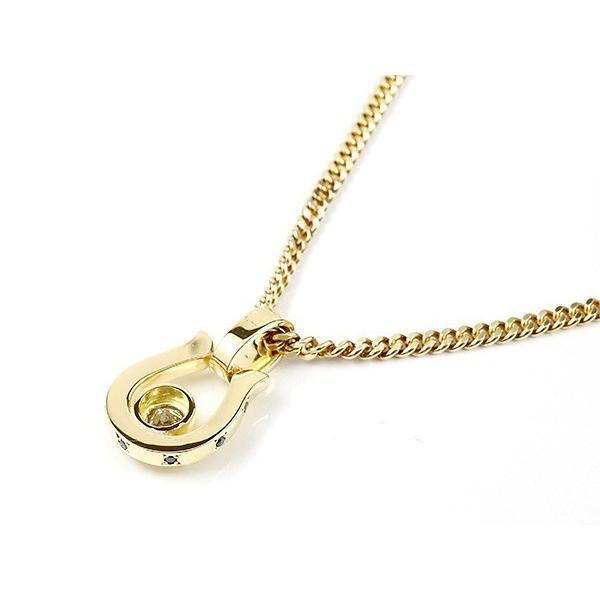 センターに大粒のダイヤモンドを留めた重量感のある馬蹄ネックレス