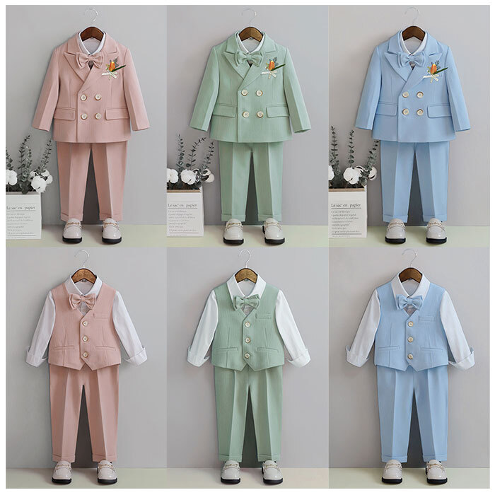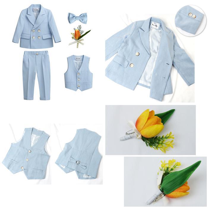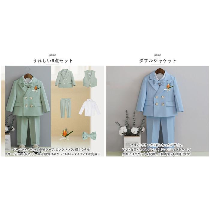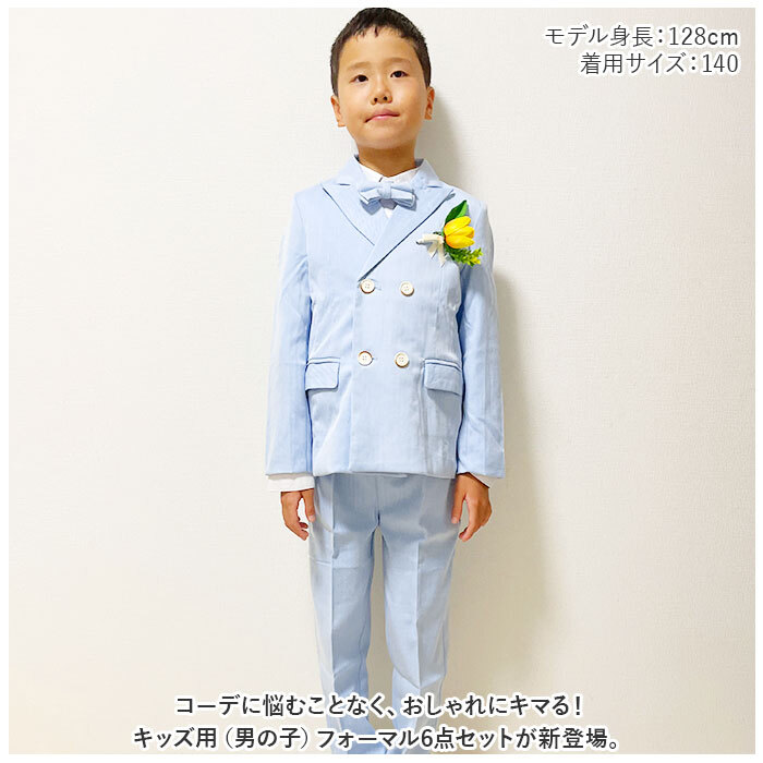 | 商品説明 | ・・コーデに悩むことなく、おしゃれにキマる!キッズ用(男の子)フォーマル6点セットが新登場。 ・【うれしい6点セット】 ・ジャケット、ベスト、長袖シャツ、ロングパンツ、蝶ネクタイ、コサージュの6点セット。大人顔負けのかっこいいスタイリングが完成☆ ・【ダブルジャケット】 ・フロントボタンが2列になったデザイン。ソフトな肩パッド入りで、美しいシルエットをキープ。左右にはポケットを配置。(※胸ポケットは飾りです。) ・【こなれ感がアップするベスト】 ・よりスタイリッシュな雰囲気を演出し、アクセントになるアイテム。ジャケットを脱いでもおしゃれ☆バックベルトでサイズの微調節可能。(※ポケットは飾りです。) ・【ベーシックな長袖シャツ】 ・フロントボタン付きの、スタンダードなカタチに仕立てたシャツ。単体使いもしやすいホワイトカラー。 ・【ストレスなく履けるロングパンツ】 ・締めつけ感のないバックゴム仕様で、フロントからの見た目もすっきり。お子さま1人でも着脱ラクチン!左右にポケット付き。(※ウエストボタンは飾りです。) ・【小物使いも完璧】 ・襟元にポイントをプラスする蝶ネクタイは、ワンタッチ装着できるクリップタイプ。胸元を彩るコサージュも付属。 ・【色々なシーンで活躍】 ・お子さまが着用しやすい、柔らかな生地感。誕生日や七五三、結婚式などのイベント、入学・卒業式に! |