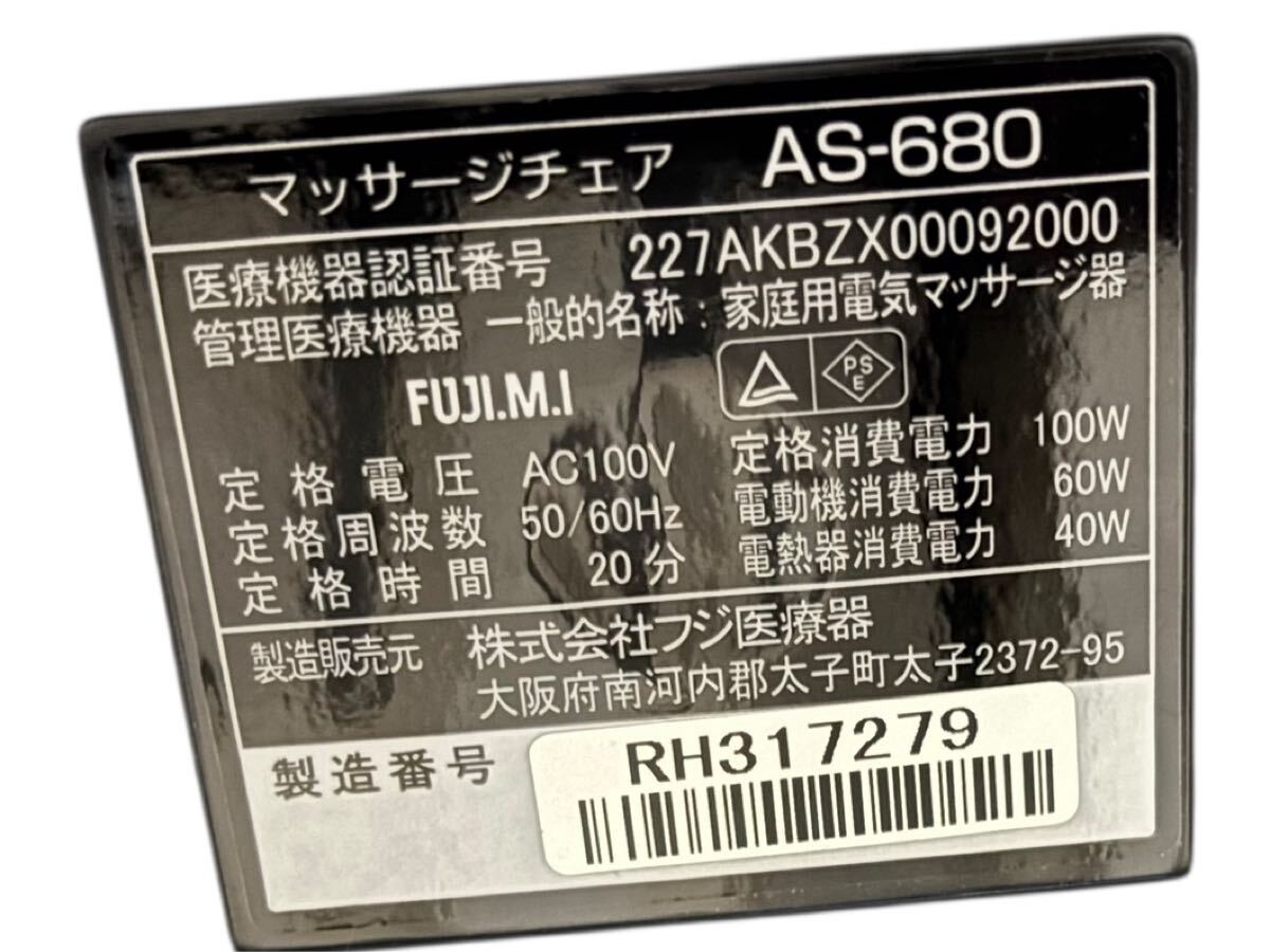 【動作良好】フジ医療器 マッサージチェア AS-680 ブラック B652