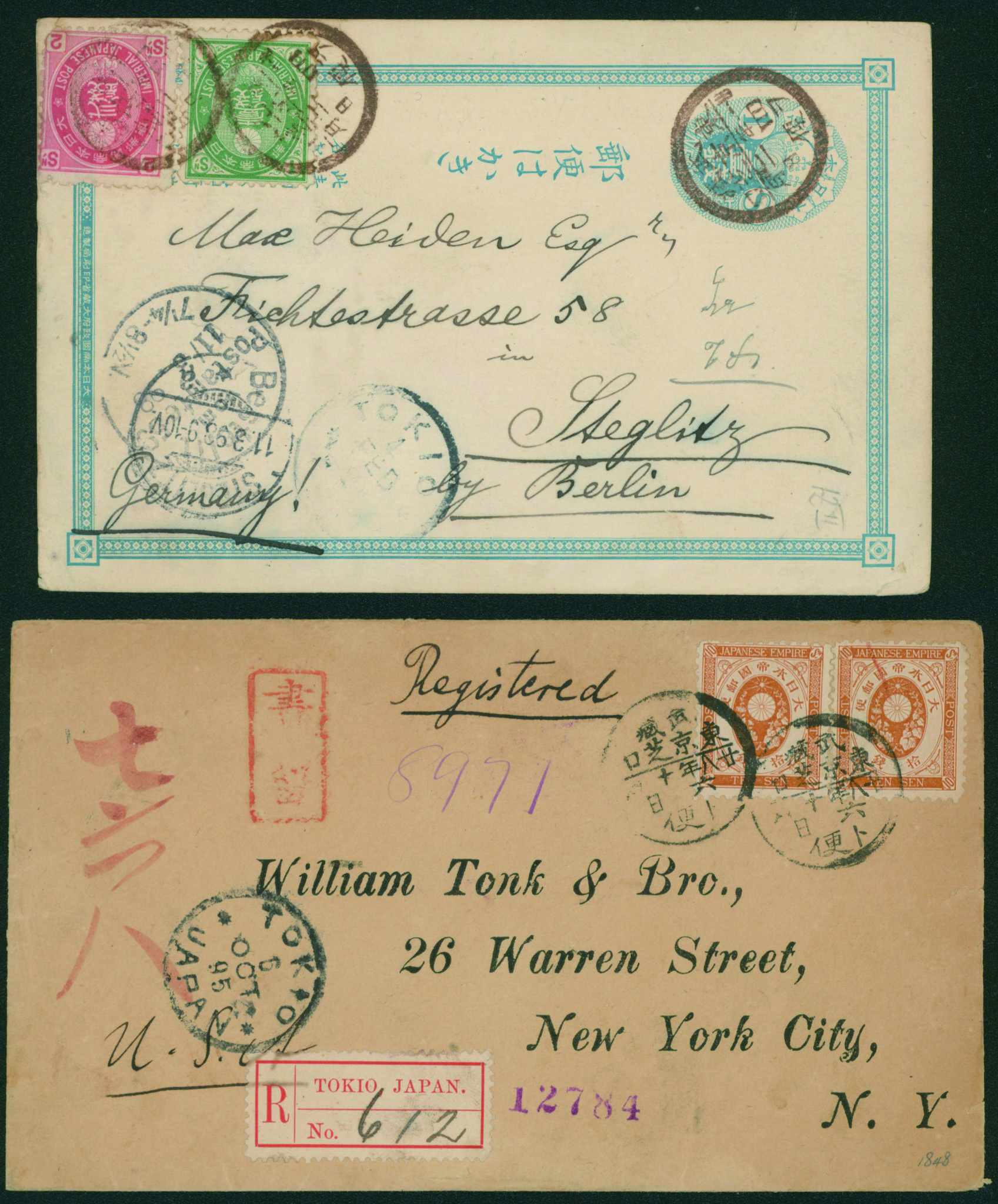 商品説明:[39509] 2通 新小判10銭 ペア 貼り 丸一印 明治28 10 6 武蔵/東京芝口→TOKIO→
