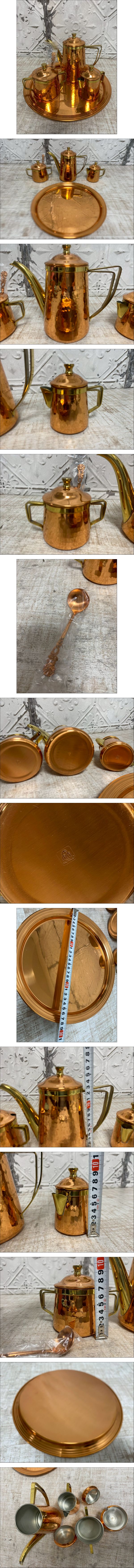 | ★a-152 morico 銅製内錫引 ティーポット シュガーポット クリーマーポット トレー トレイ 金属工芸 レトロ ヴィンテージ アンティーク調 | ||