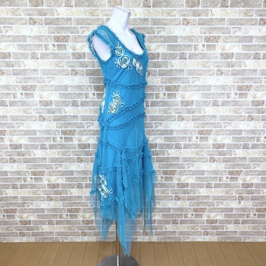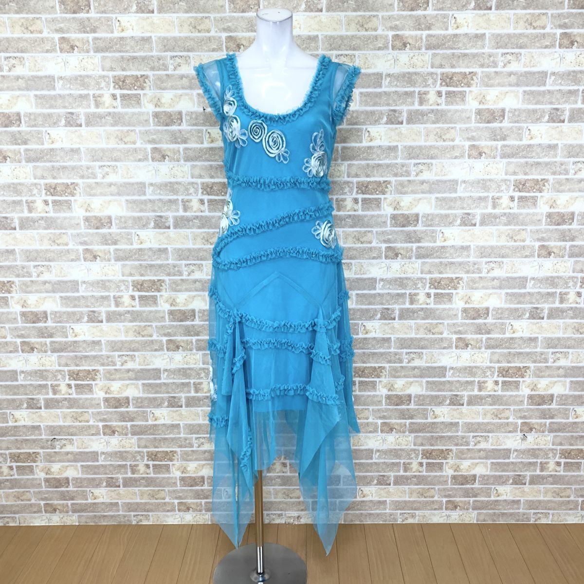 1円 社交ダンスドレス Create Sun 青系 8 ダンス衣装ドレス カラードレス  発表会 舞台衣装 イベント 中古17094