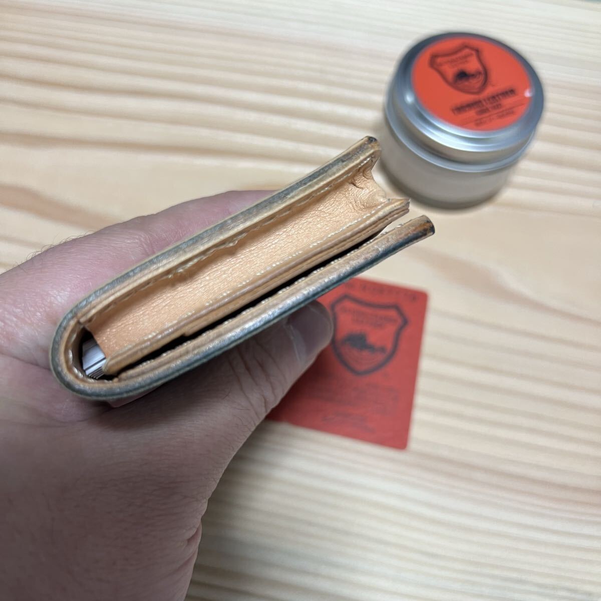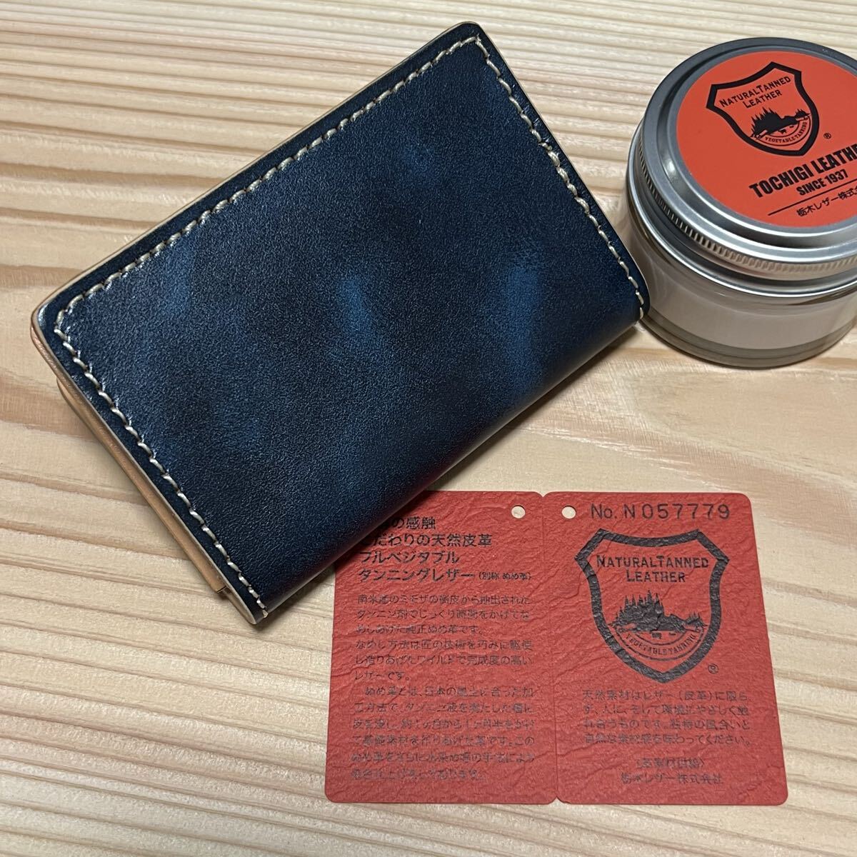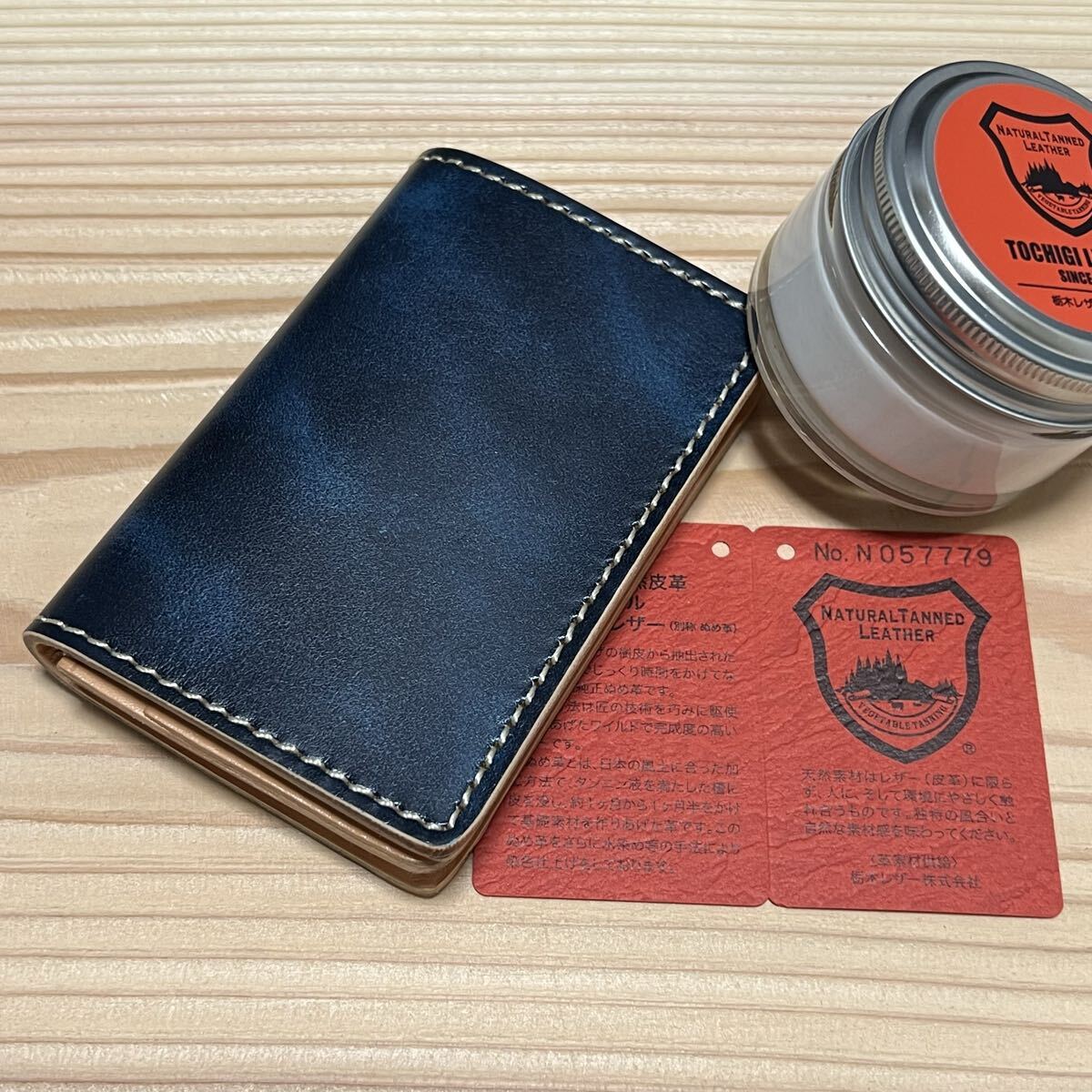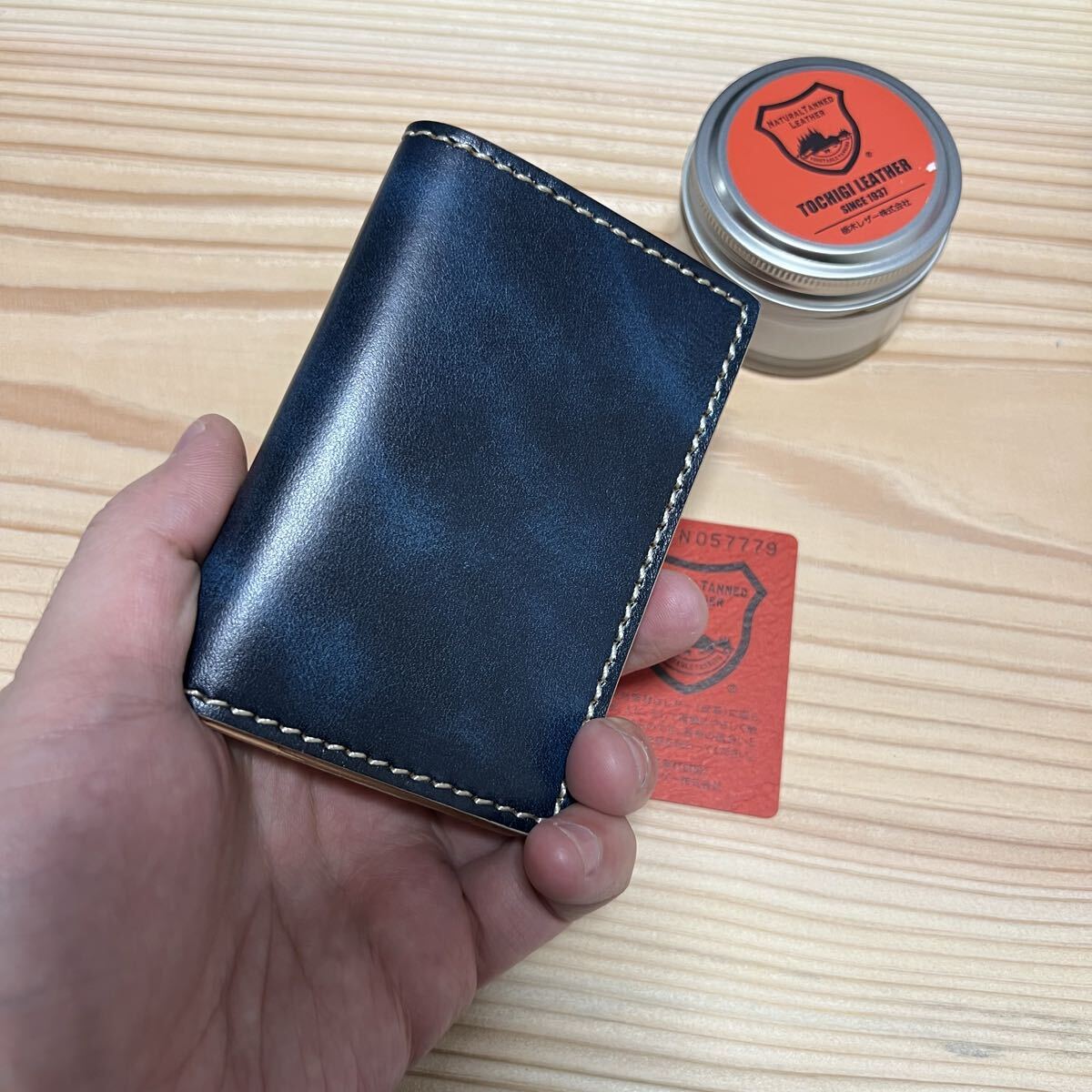 栃木レザーを使用しました、栃木レザーに手作業で何度も染料を塗り込んだ。