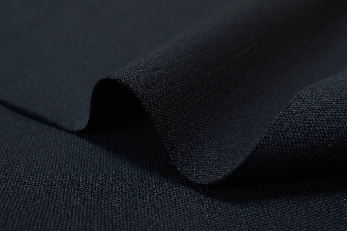 ウール100%、厚さは中厚地、透け感はほとんど無く、しなやかソフトな風合いで、適度な落ち感もあり、さらっとした質感で、ウール素材ですがチクチク感はございません。