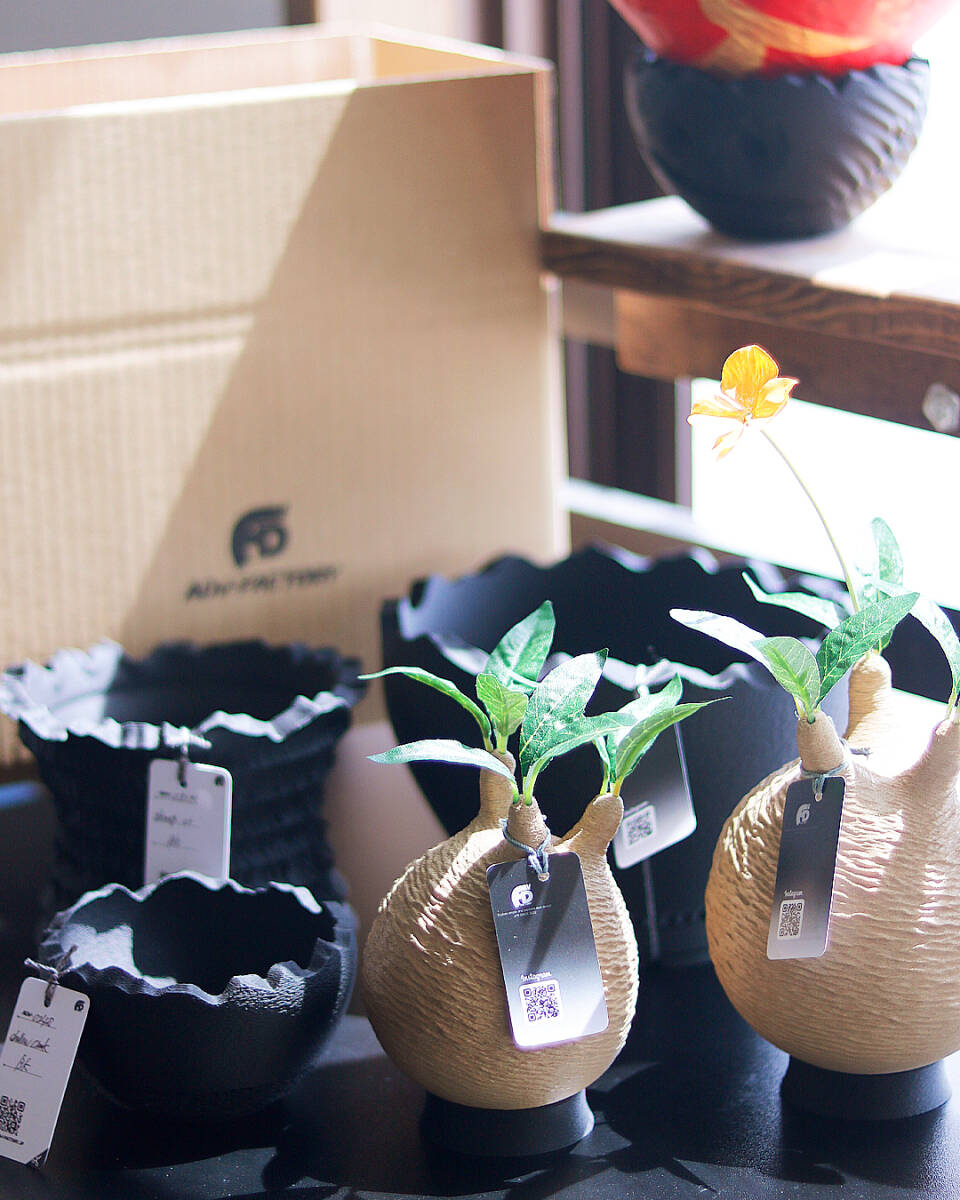 3Dプリンターを活用し、感性と機能性を融合させたプロダクトを一つひとつ丁寧に制作しています。植物と人、その双方にとって心地よい共鳴が生まれるような作品づくりを目指しています。