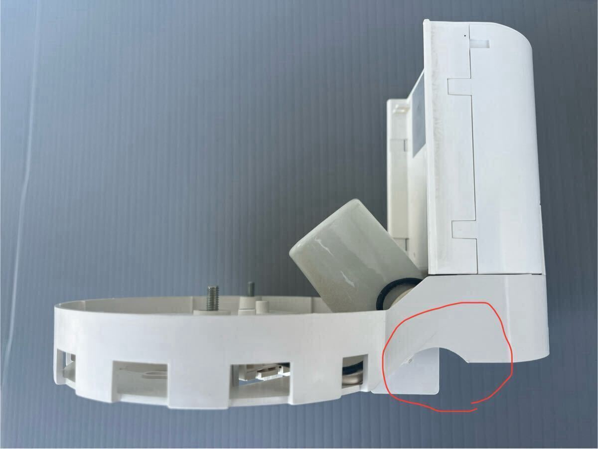 5枚目の写真の赤丸部のプラスチックが欠けています。