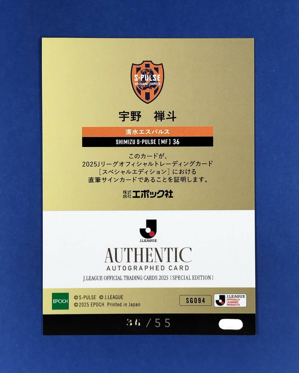 | 商品名 | EPOCH 2025 Jカード SE - 宇野 禅斗 清水 直筆サインカード 36/55 ジャージナンバー |