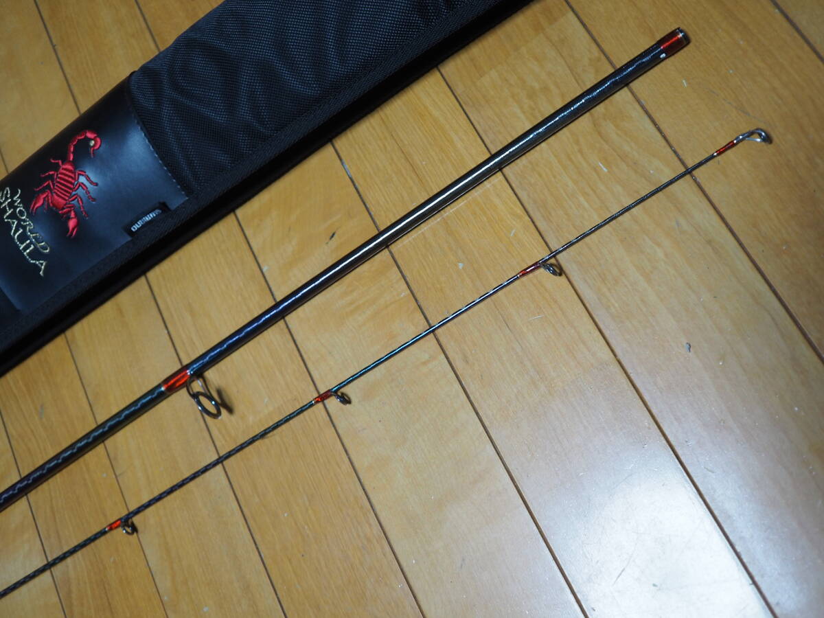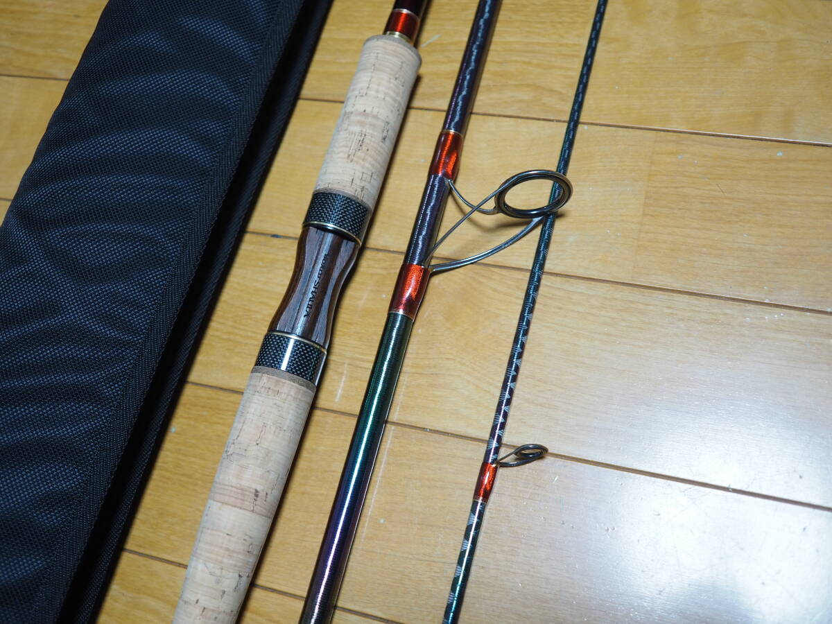 全体的に傷も少なく、かなりの美品です。 穂先の詰め等もございません。 レインボーのコーティングも綺麗に残っています。 チタンフレームSIC-Kガイド搭載モデル 全長10.6f | ||||