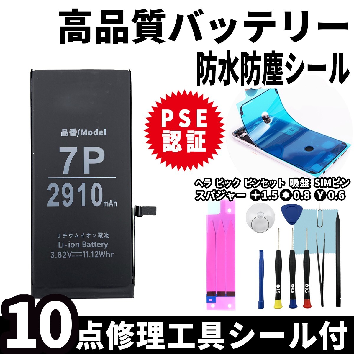 ・バッテリー本体 ・修理交換用工具キット ・iPhone専用両面テープ ・iPhone専用防水シール |