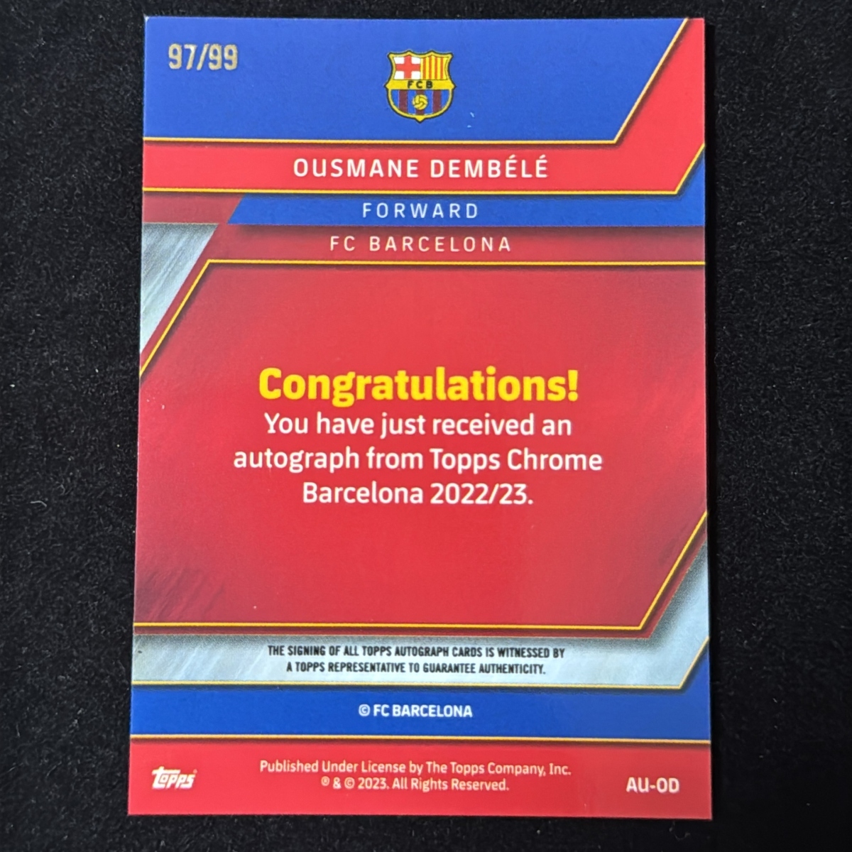 Ousmane Dembele デンベレ Topps Chrome 2022-2023 /99 Gold Auto サイン 直筆 FC Barcelona