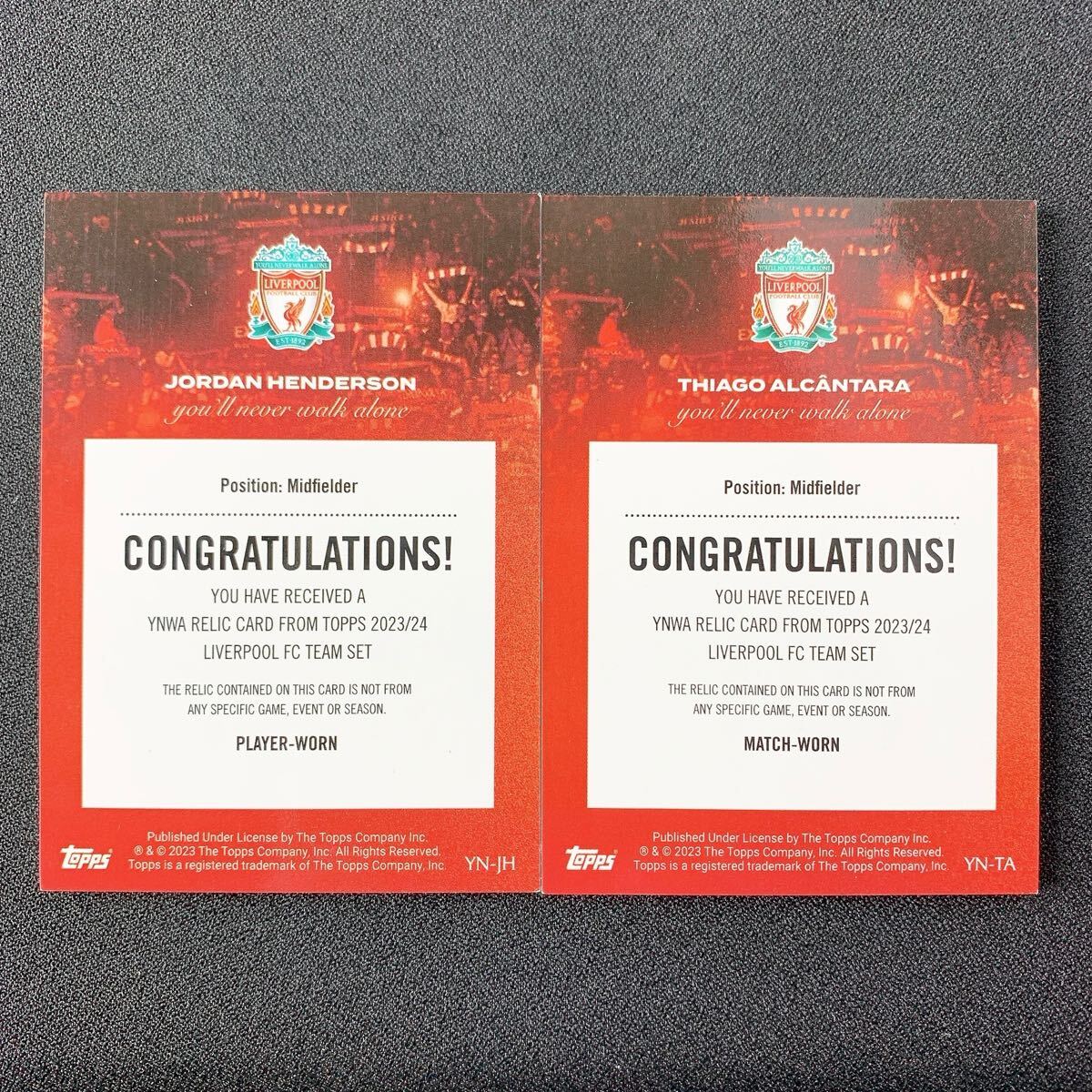 ・カード名:1円スタート Liverpool メモラビリア2枚セット THIAGO ALCNTARA JORDAN HENDERSON チアゴ ヘンダーソン リバプール Topps Soccer