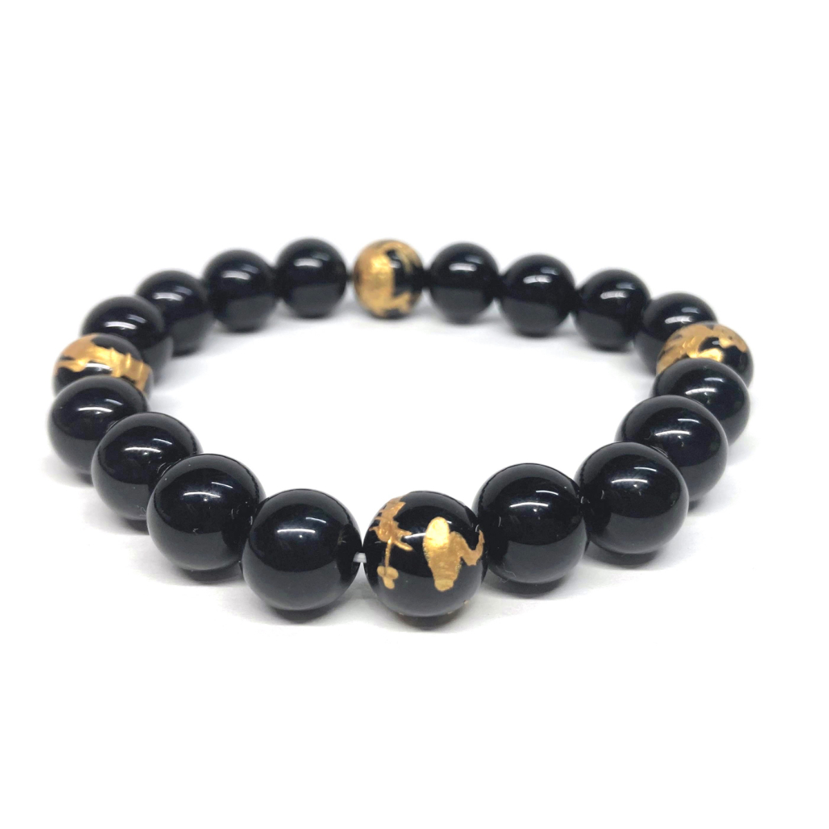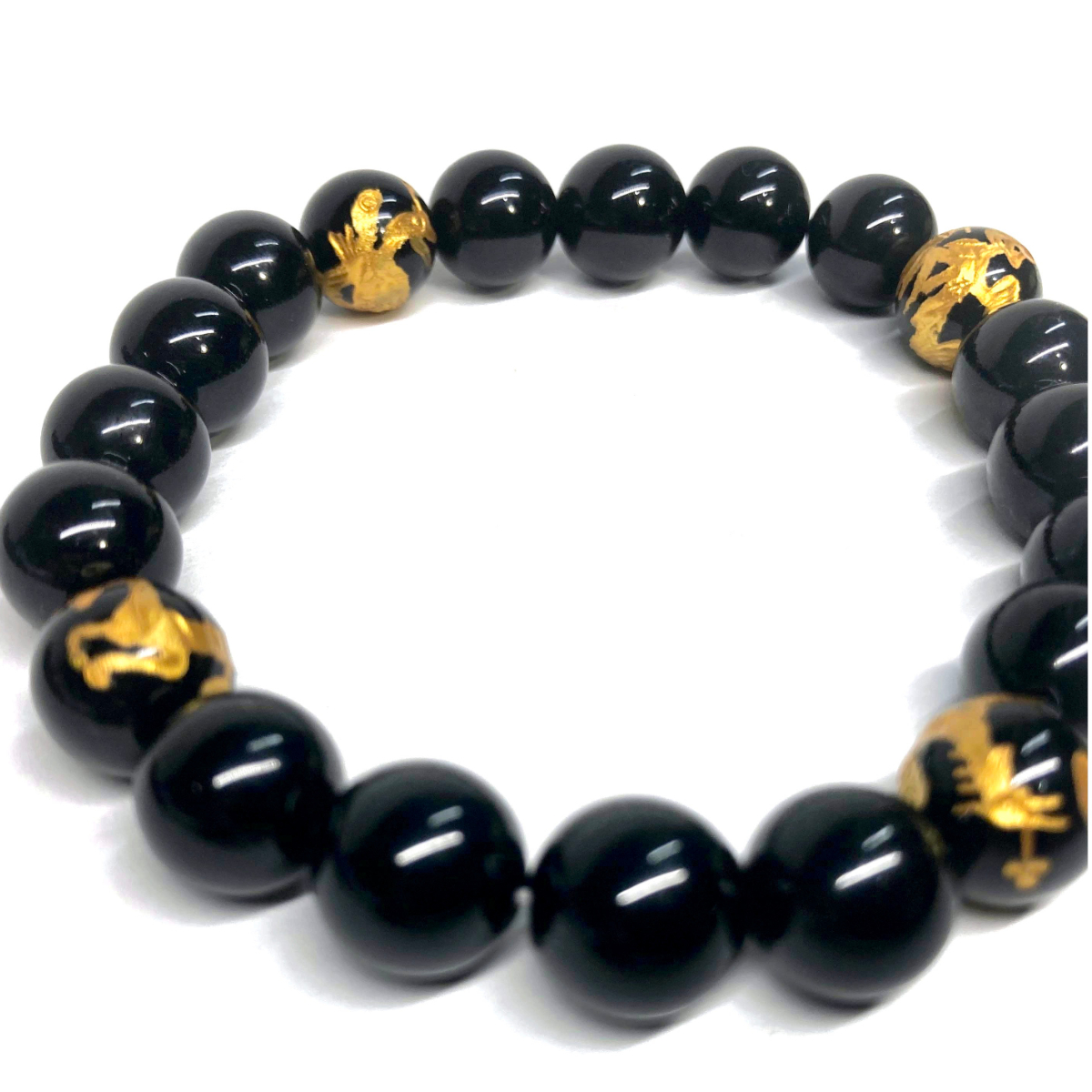 10mm 四神獣金彫オニキス×オニキス パワーストーン ブレスレット天然石 運気上昇 開運 金運 恋愛運 青龍 白虎 玄武 朱雀 シンプル ☆