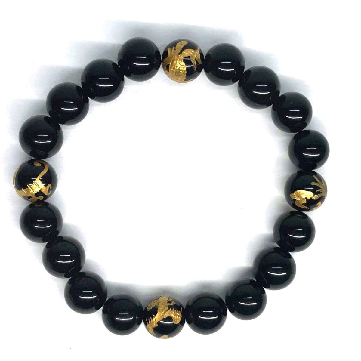 こちらは、四神獣金彫オニキスとオニキスを組み合わせたパワーストーンブレスレットです。四神獣は、中国の伝説で4つの方向(東西南北)を守護する神聖な神。四神獣、厄災から身を守り、多くの運気を呼び込むと言われております。石大きさは程よくインパクトのある10mm玉で内周 約17cmです。 数に限りがございますので気になる方はお早めにどうぞ。