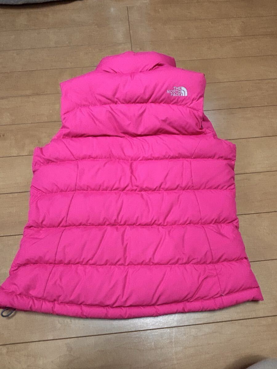 綺麗なピンク色のノースフェイスのダウンベストです。