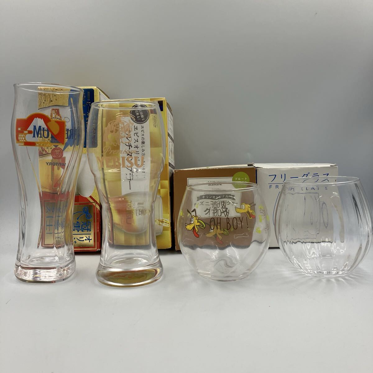 昭和レトロ 【グラス おまとめ 4 点 】 サントリー ビールグラス プレミアムモルツ 当時物 コップ SUNTORY ロックグラス 酒 ウイスキー