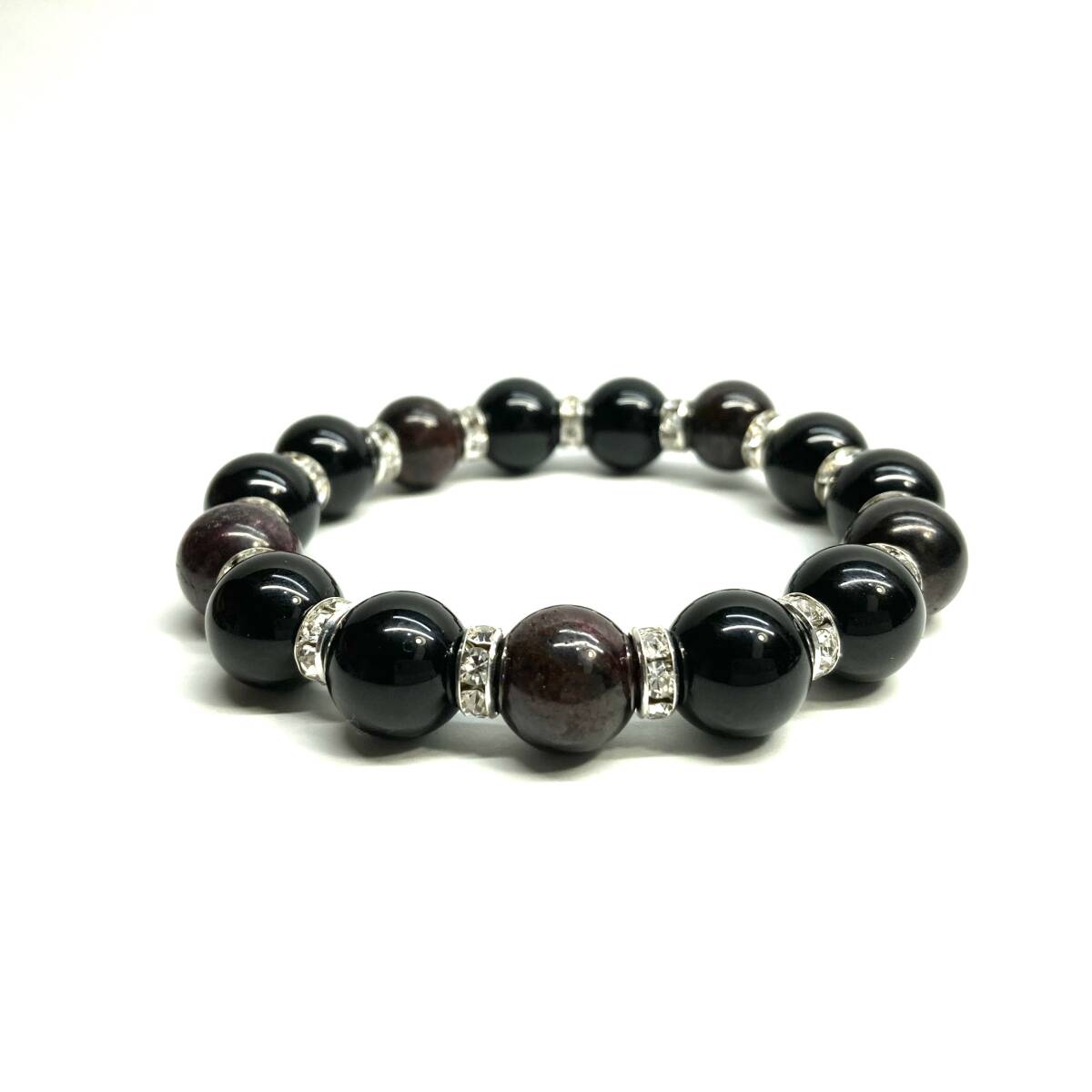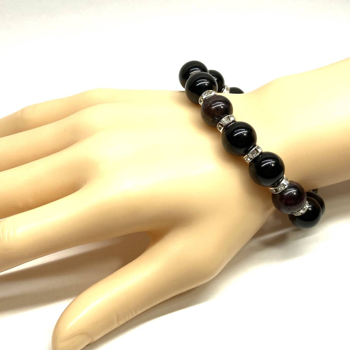 こちらは、モリオンとガーネットを組み合わせたパワーストーンブレスレットです。間にはロンデルを挟み高級感あるデザインに仕上げております。程よくインパクトがある12mm玉を使用して内周約18cmです。(サイズ変更の場合は取引ナビにてご連絡をお願いします。) 数に限りがございますので気になる方はお早めにどうぞ。