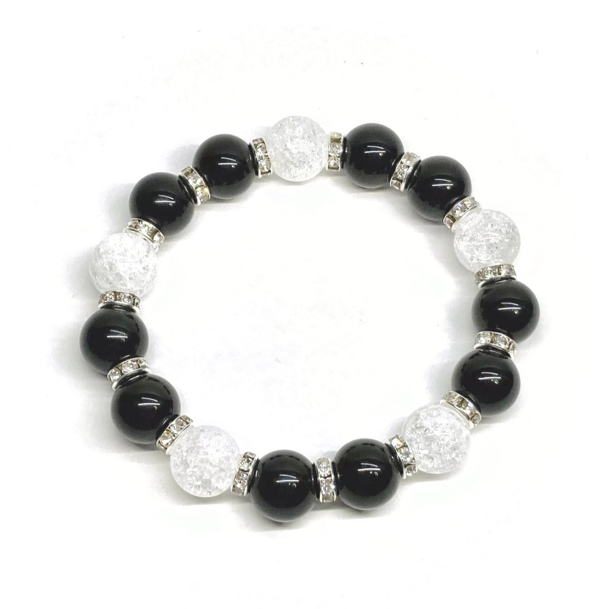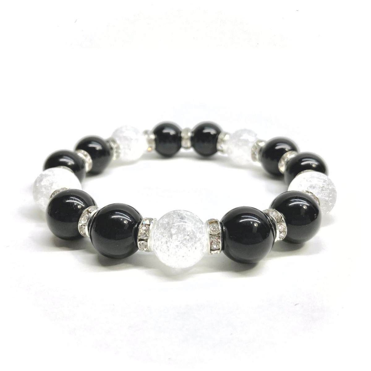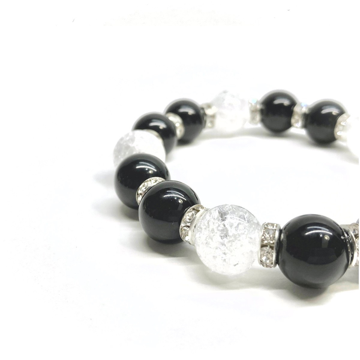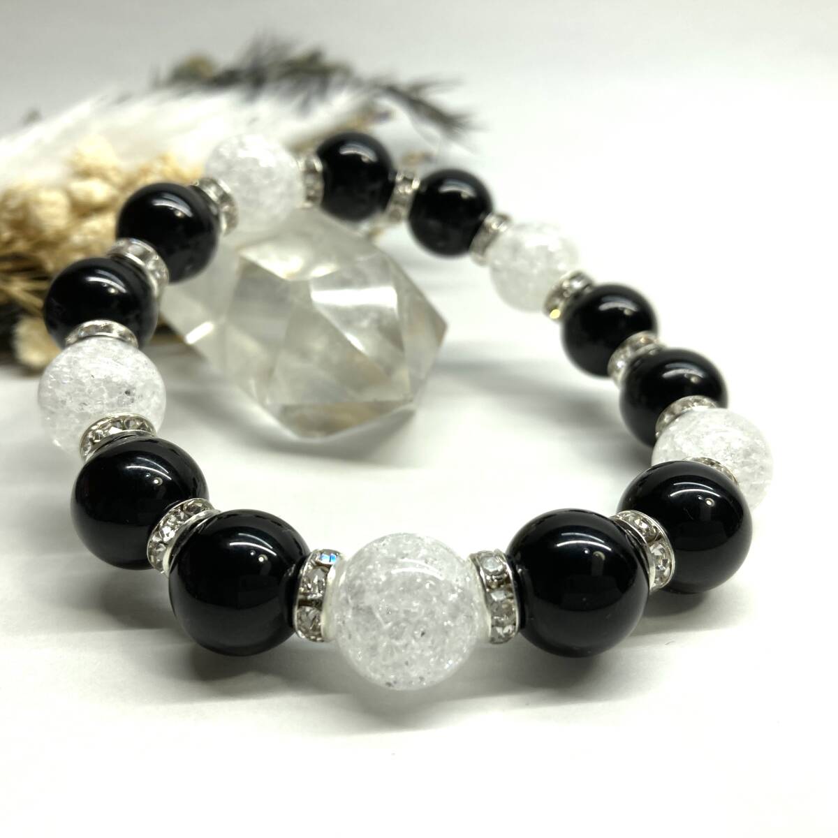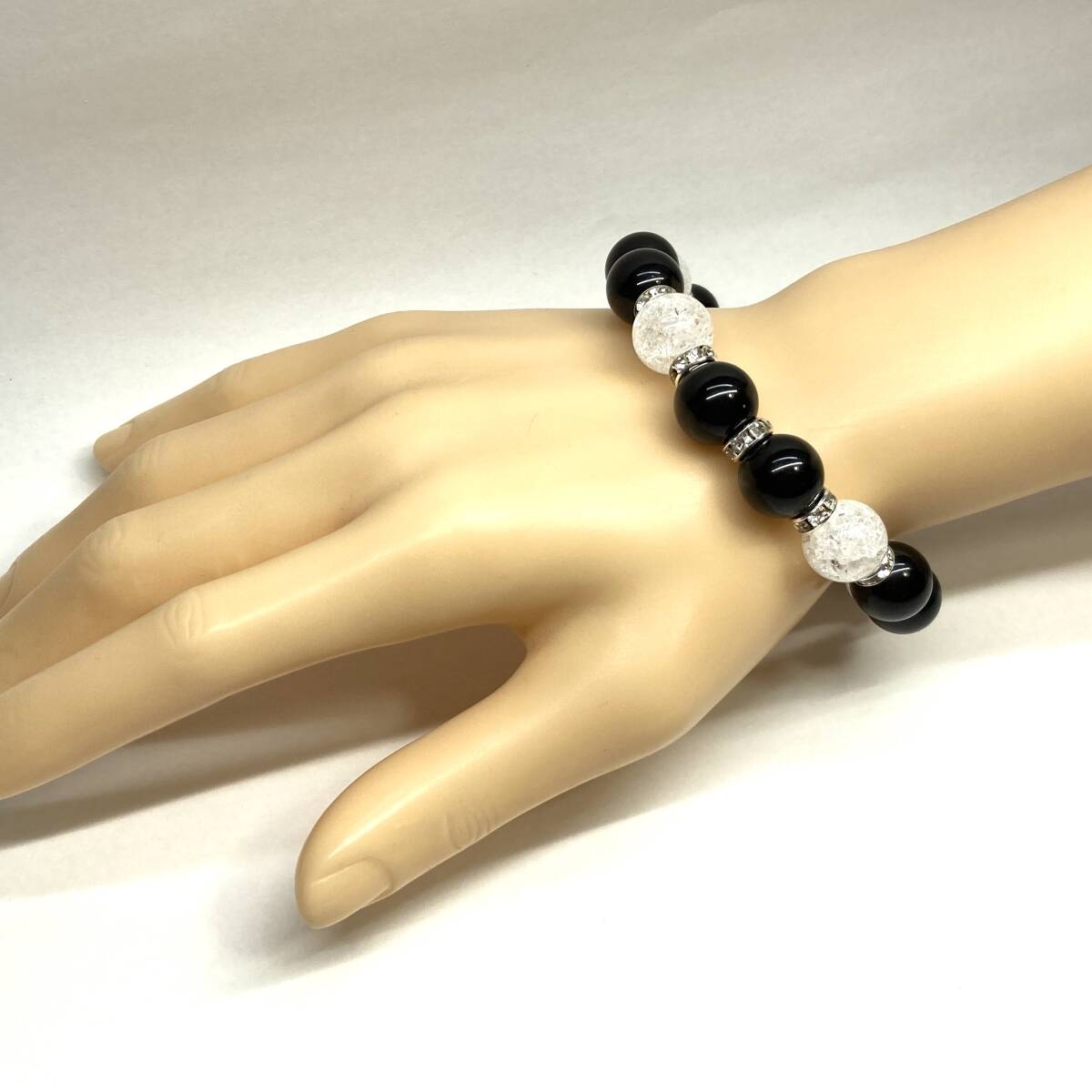 こちらは、モリオンとクラック水晶を組み合わせたパワーストーンブレスレットです。間にはロンデルを挟み高級感あるデザインに仕上げております。程よくインパクトがある12mm玉を使用して内周約18cmです。(サイズ変更の場合は取引ナビにてご連絡をお願いします。) 数に限りがございますので気になる方はお早めにどうぞ。