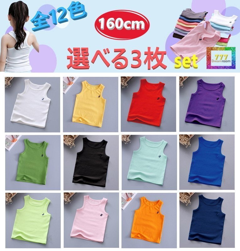 1スタ☆kids 全12色 選べる 3枚☆【160cm】Dog ワンポイント タンクトップ K-278 ノースリーブ 子供 インナー 下着 シャツ