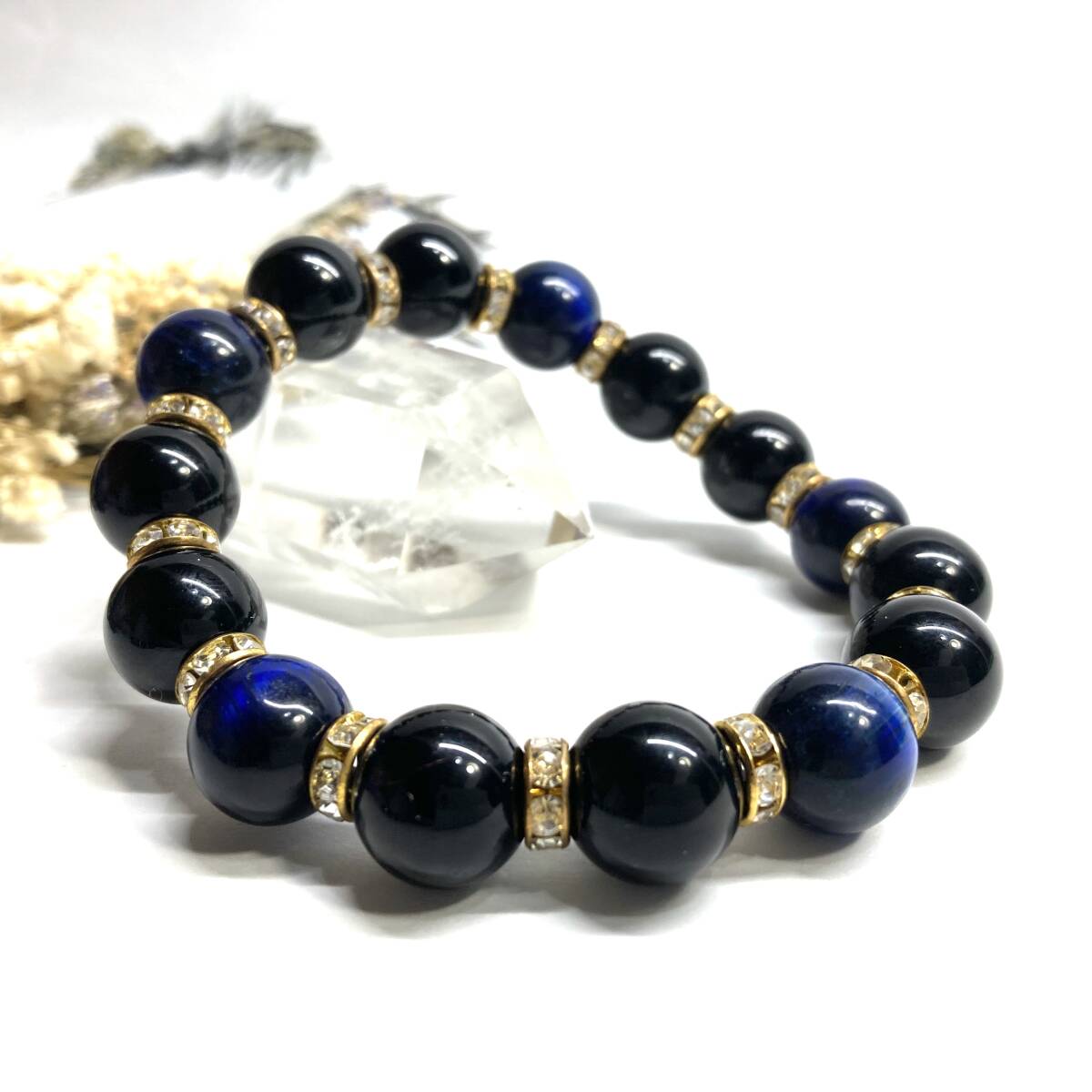 こちらは、モリオンとブルータイガーアイを組み合わせたパワーストーンブレスレットです。間にはロンデルを挟み高級感あるデザインに仕上げております。程よくインパクトがある12mm玉を使用して内周約18cmです。(サイズ変更の場合は取引ナビにてご連絡をお願いします。) 数に限りがございますので気になる方はお早めにどうぞ。