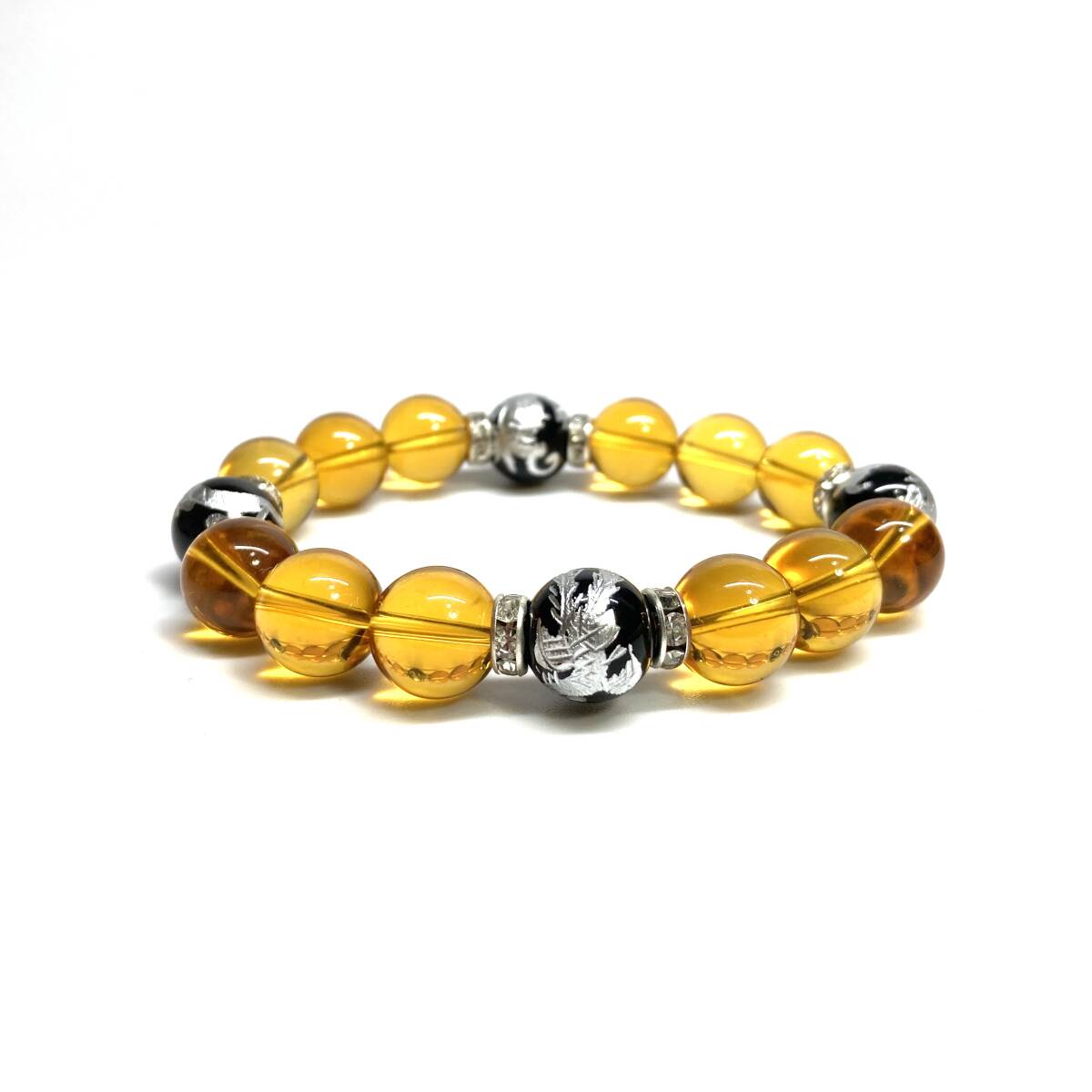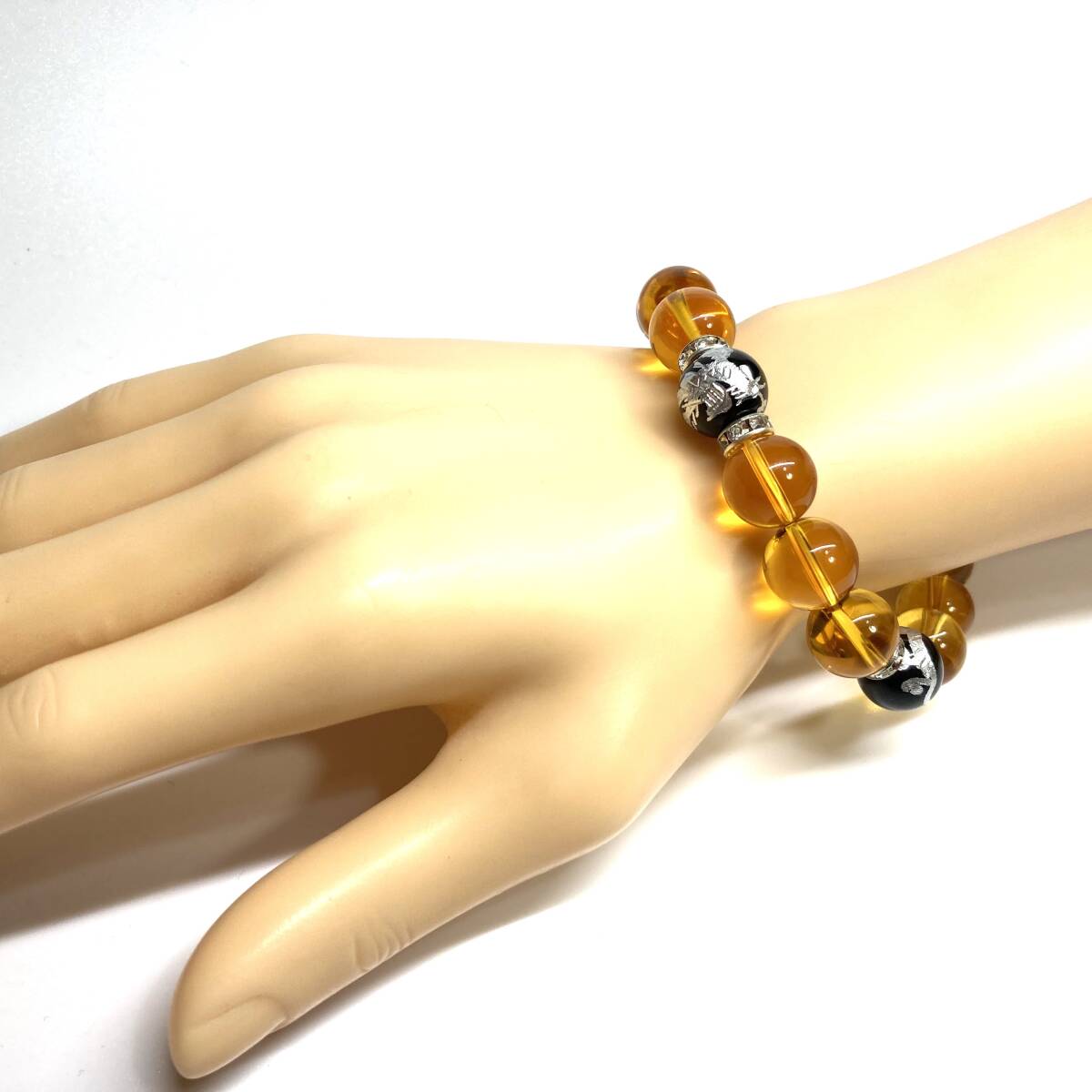 四神獣銀彫オニキス×シトリン 12mm パワーストーン ブレスレット天然石 青龍 白虎 玄武 朱雀 運気上昇 金運 健康 お守り 開運 四神獸 S