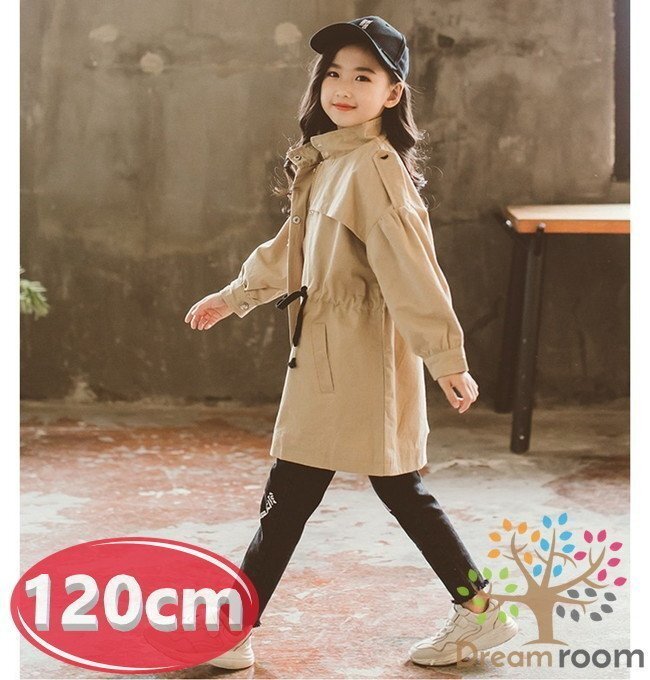 1スタ☆【120cm】スプリングコート ベージュ アウター ジャケット 子供服 女の子 韓国子供服 モッズコート 秋 春物
