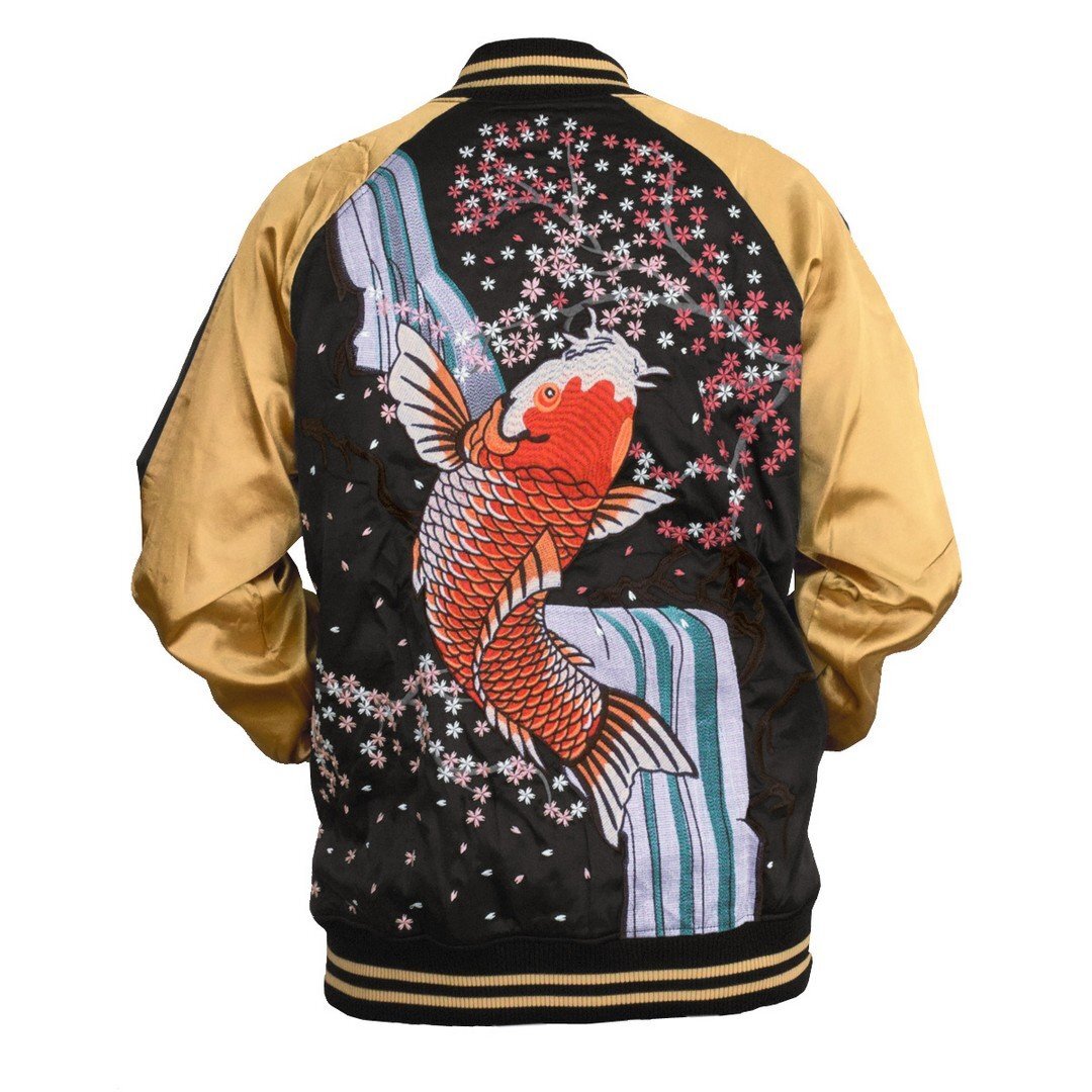 【C00246-4】スカジャン 桜鯉 ゴールド XL 横須賀発祥 日本 サテン生地 ジャンパー 跳ね 鯉 錦鯉 和柄 総刺繍