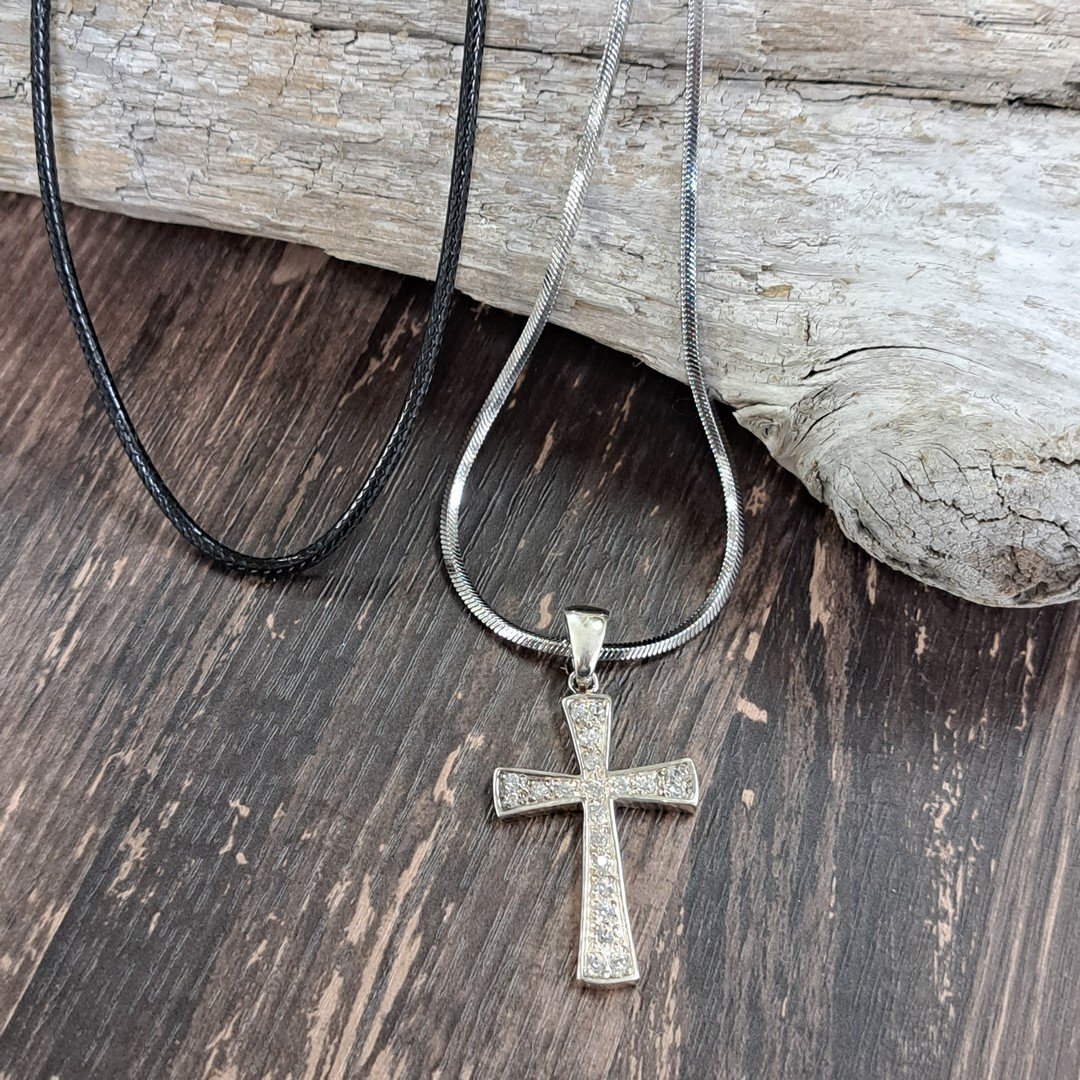 【C7036】送料無料 シルバー925 チャーム クロス ホワイト ジルコニア 十字架 ネックレス ペンダント アクセサリー ゴシック カジュアル メンズ レディース チェーン スネーク 50cm