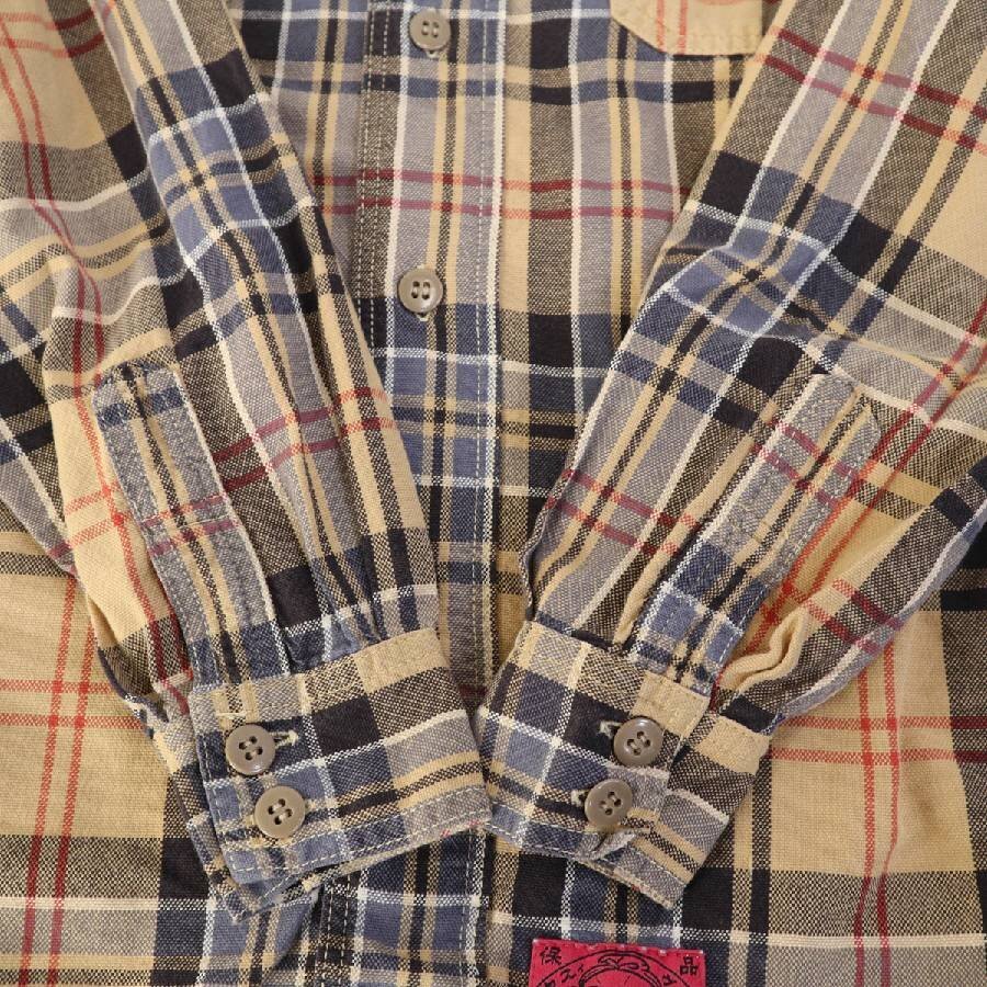 EVISU エヴィス 長袖シャツ ネルシャツ サイズ38(M) メンズ ベージュ チェック柄★312v08