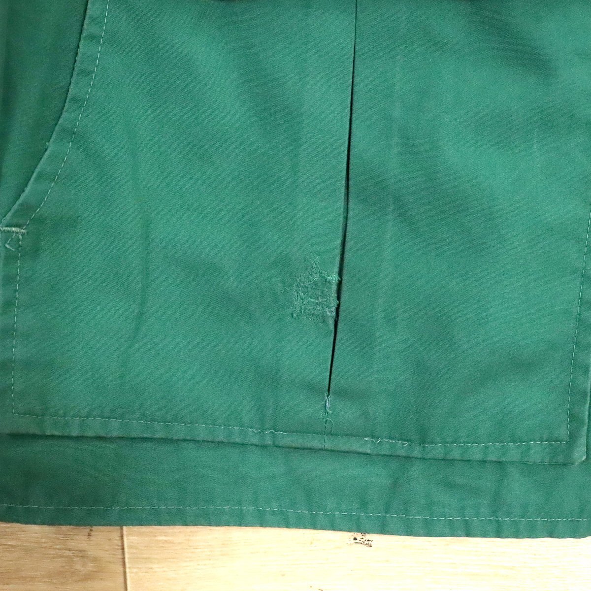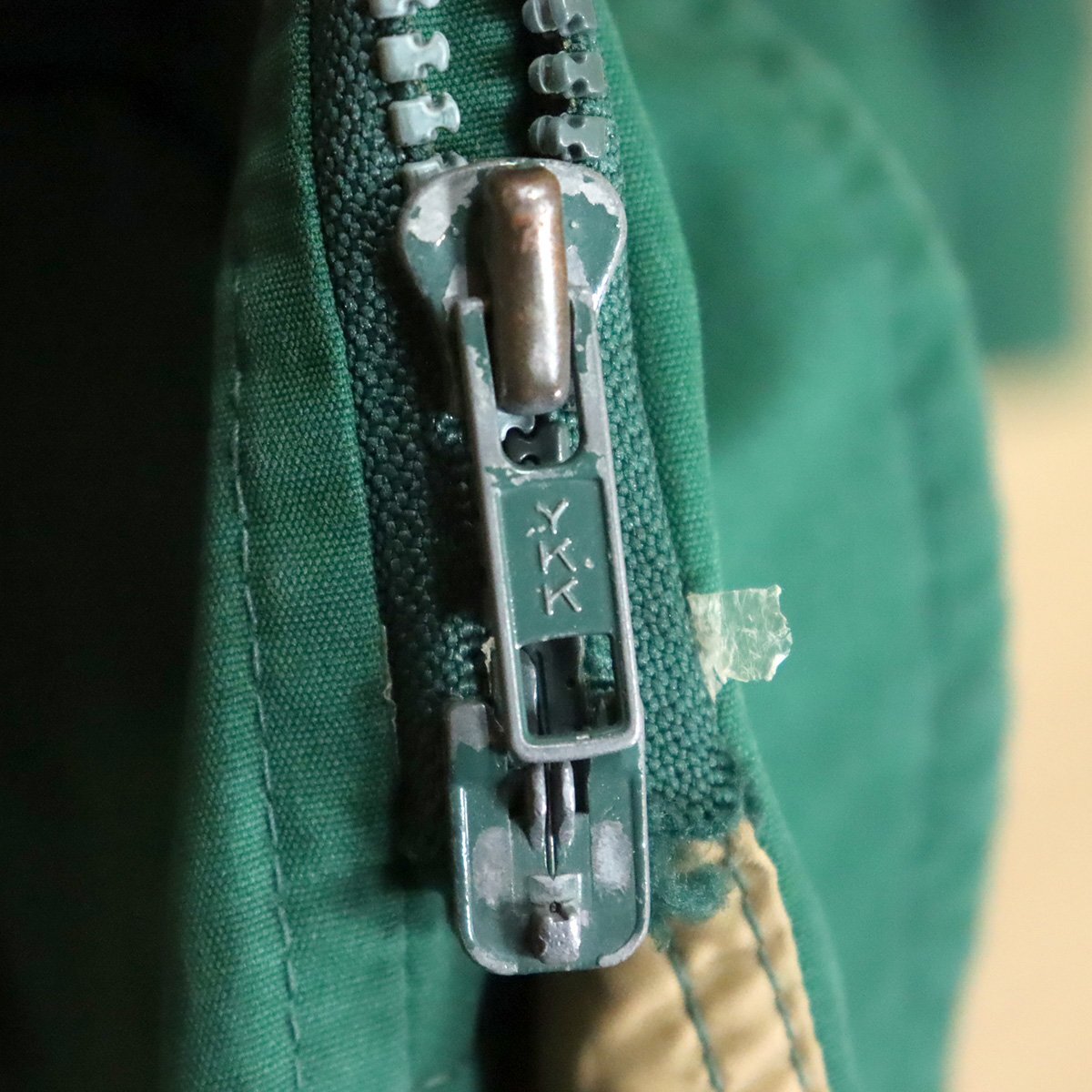 中古品です。使用感があります。写真にあるようにダブルスライダーの下ジップつまみ無し、右ポケットにリペア跡、襟や背中下付近に少し汚れがあります。