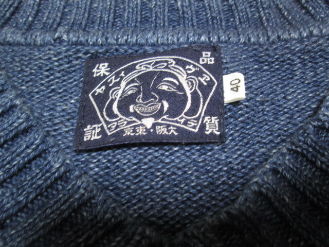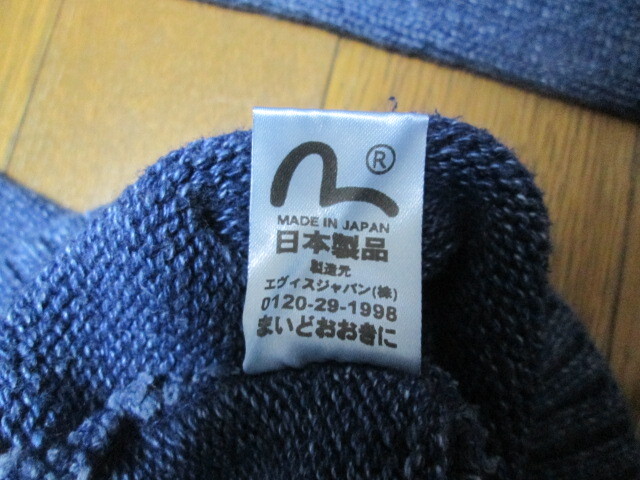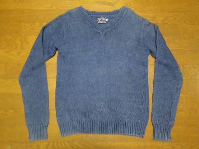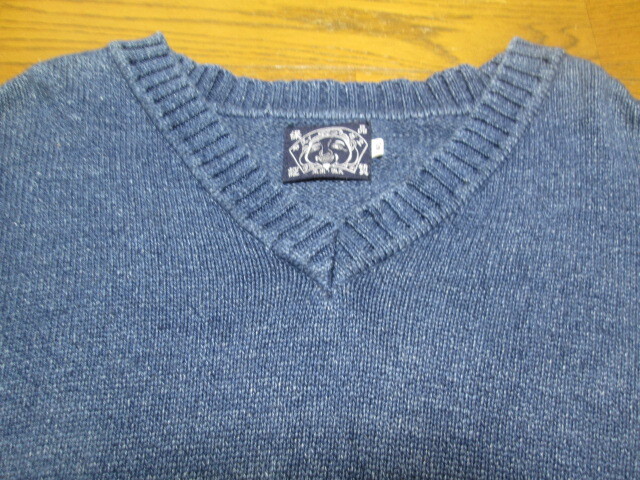 EVISU エヴィス ジーンズ ニット Vネック セーター コットン 40 エヴィスヤ 恵比寿 ネイビー インディゴ染 カモメ