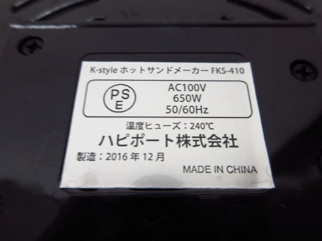 6215 K-style ホットサンドメーカー FKS-410 パピポート ワッフル グリルプレート ステンレス 630w