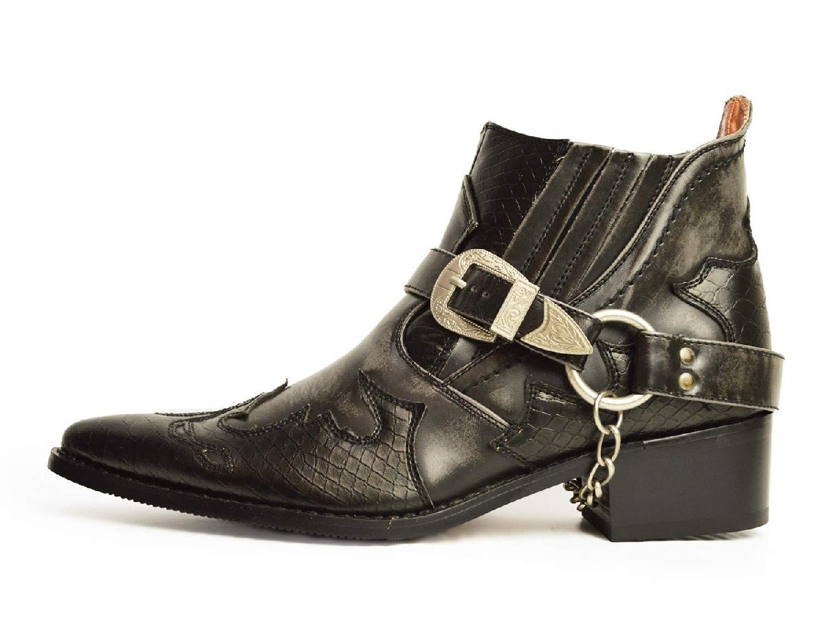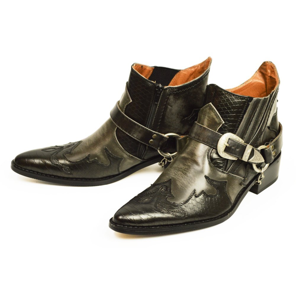 メンズ ウエスタンブーツ 脚長 ヒールアップ サイドゴア サイドジッパー ヘビ柄 パイソン バックル リングブーツ 男 靴 ze6001