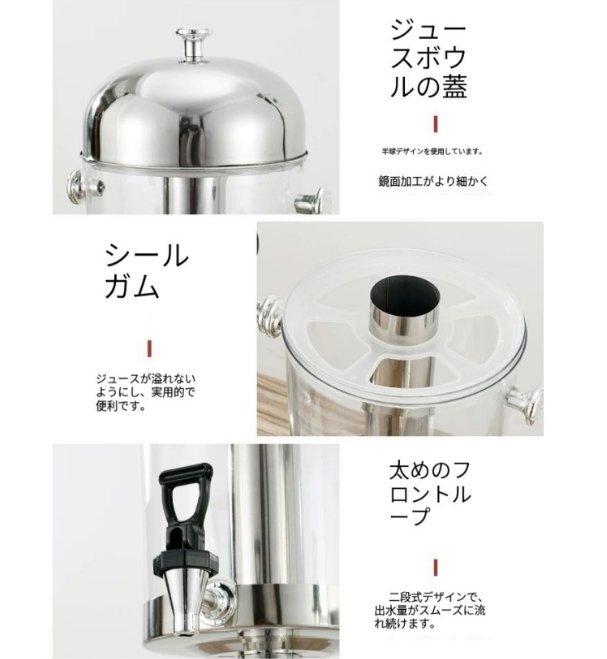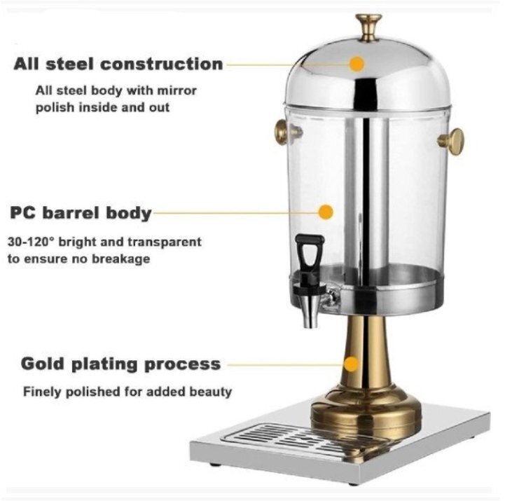 【ユニークなデザイン】ドリンクディスペンサーは、ホテル、ホステル、レストランなど、あらゆる朝食ビュッフェのハイライトです。ジュース、アイスティー、ソフトドリンクなどのさわやかな冷たい飲み物をドリンクファウンテンの魅力的な形でゲストに提供します。