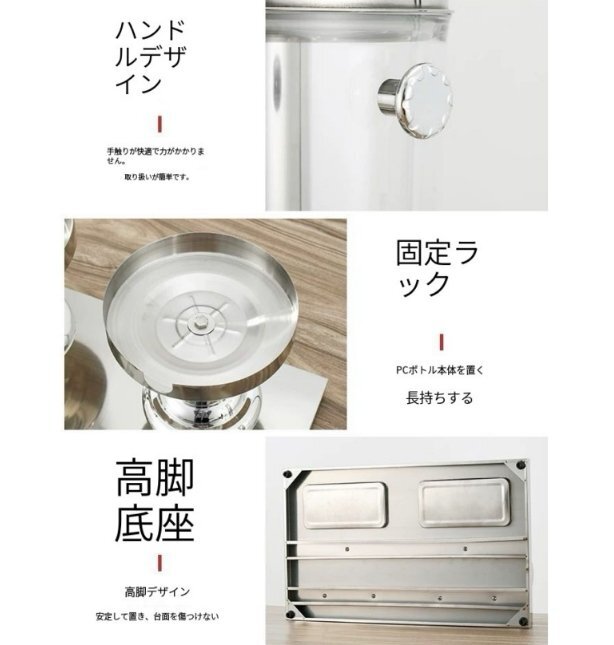 【ベストギフト】ドリンクビバレッジディスペンサーは、さまざまな冷たい飲み物を提供するために使用できます。他のケトルのようにバレルを開閉する必要はありません。蛇口を軽く押すだけで飲料水が得られるディスペンサー全体のデザインは、機能的でありながら見た目にも魅力的です。パーティーやレストランで飲み物を提供している場合でも、このケータリング飲料ディスペンサーはあらゆる環境に最適です。