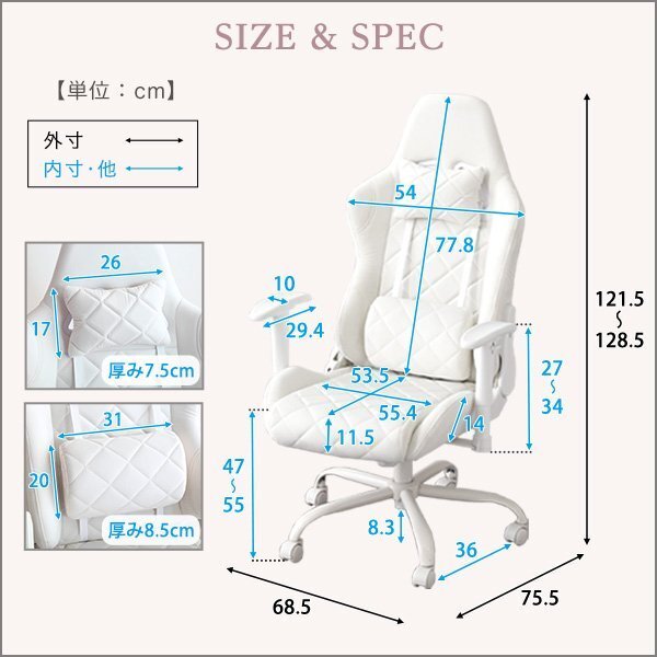 | カジュアル感のあるゲーミングチェア! スエード調の生地で肌ざわりが良く、長時間座っても疲れにくい商品で 最大155度まで背もたれを倒すことが出来る多くの機能を備えた商品です。 |