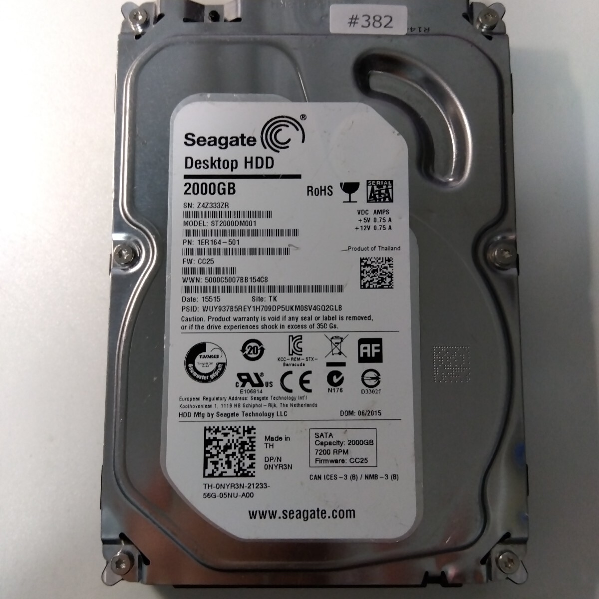 HDD 2TB 3.5インチハードディスク / Crystal DiskInfo 正常 / #382 / Seagate / ST2000DM001-1ER164