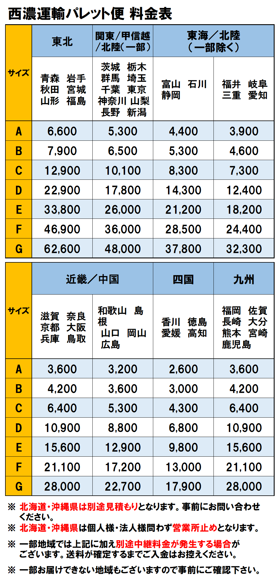 ■西濃運輸パレット便 Fサイズ