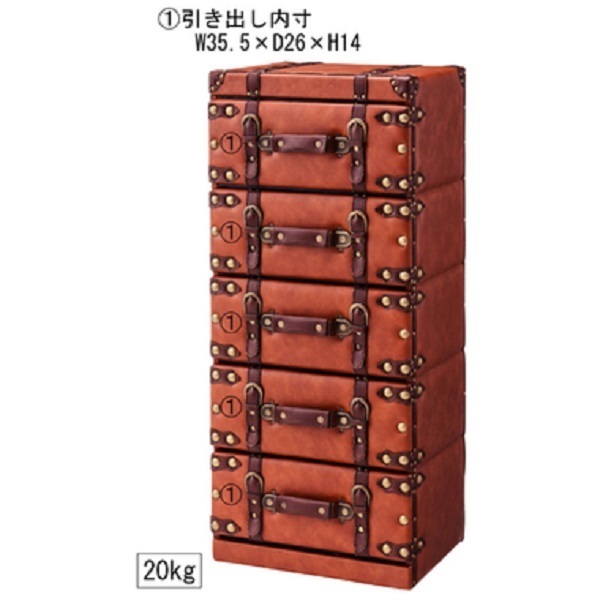 | 商品名 | ヴィンテージトランクテイストの5段チェスト |