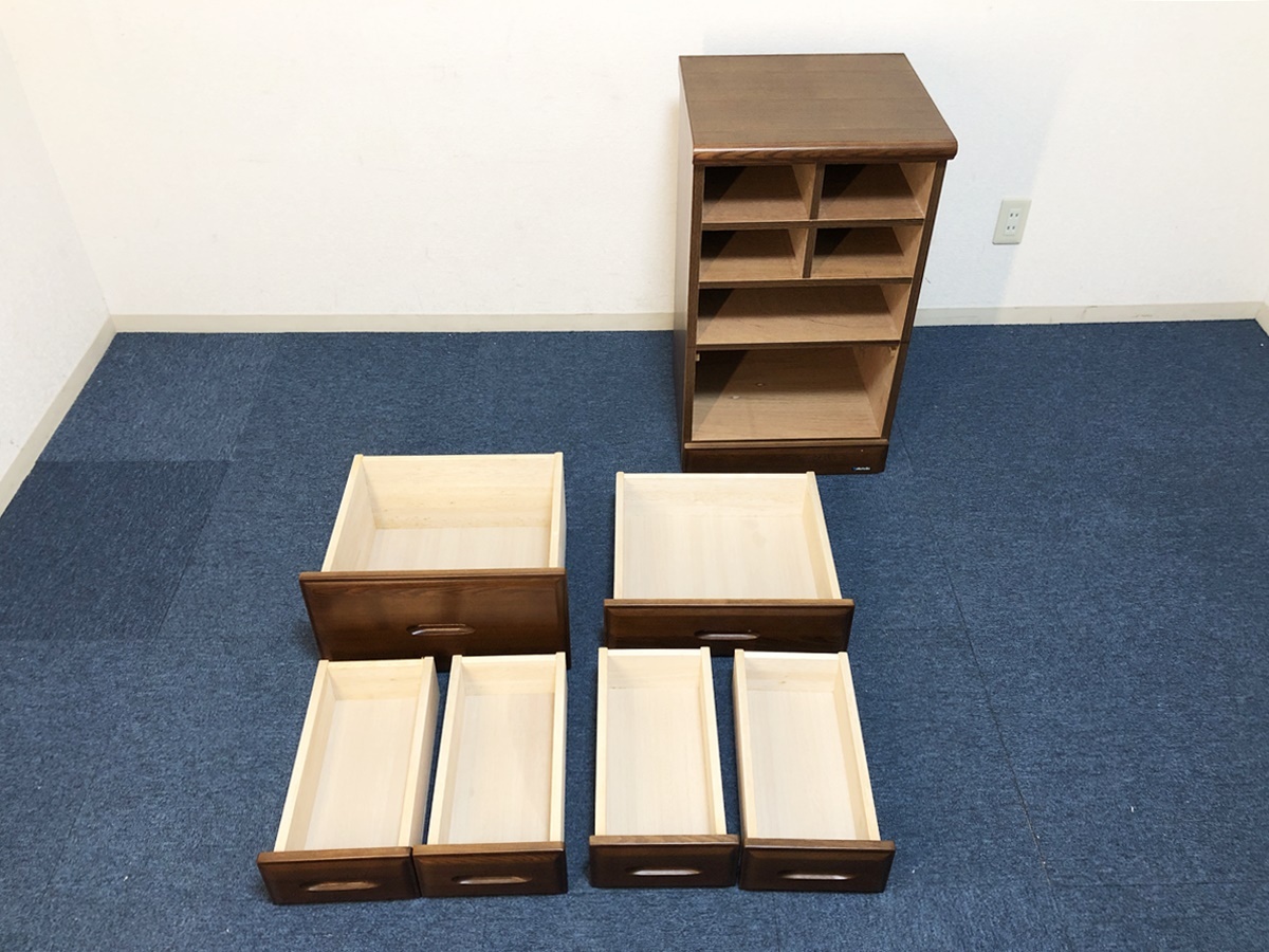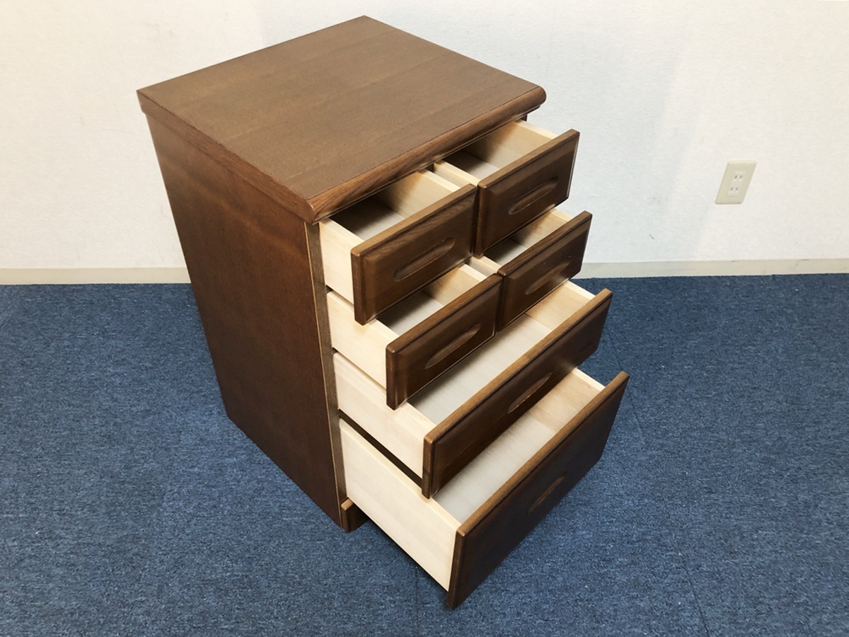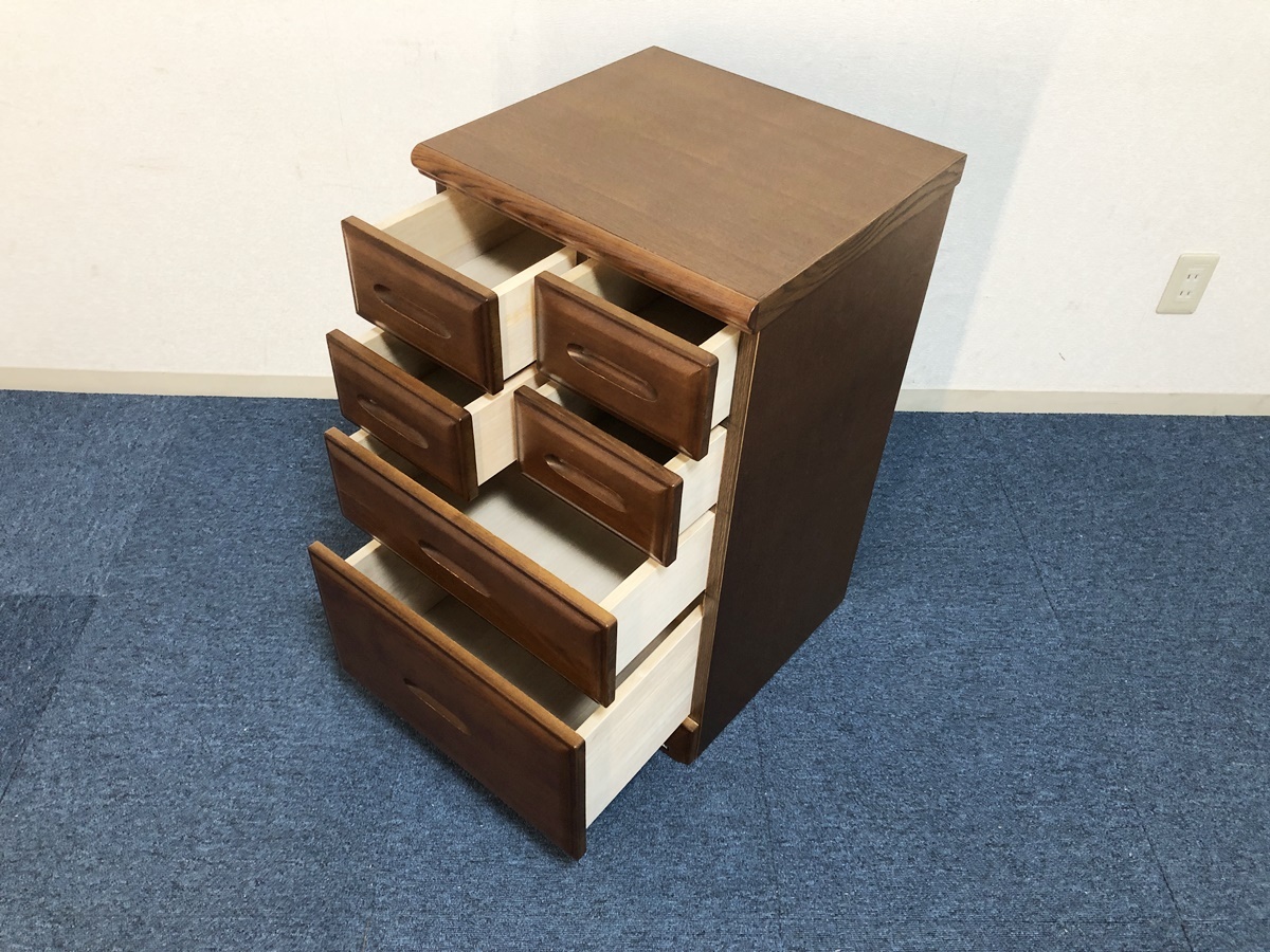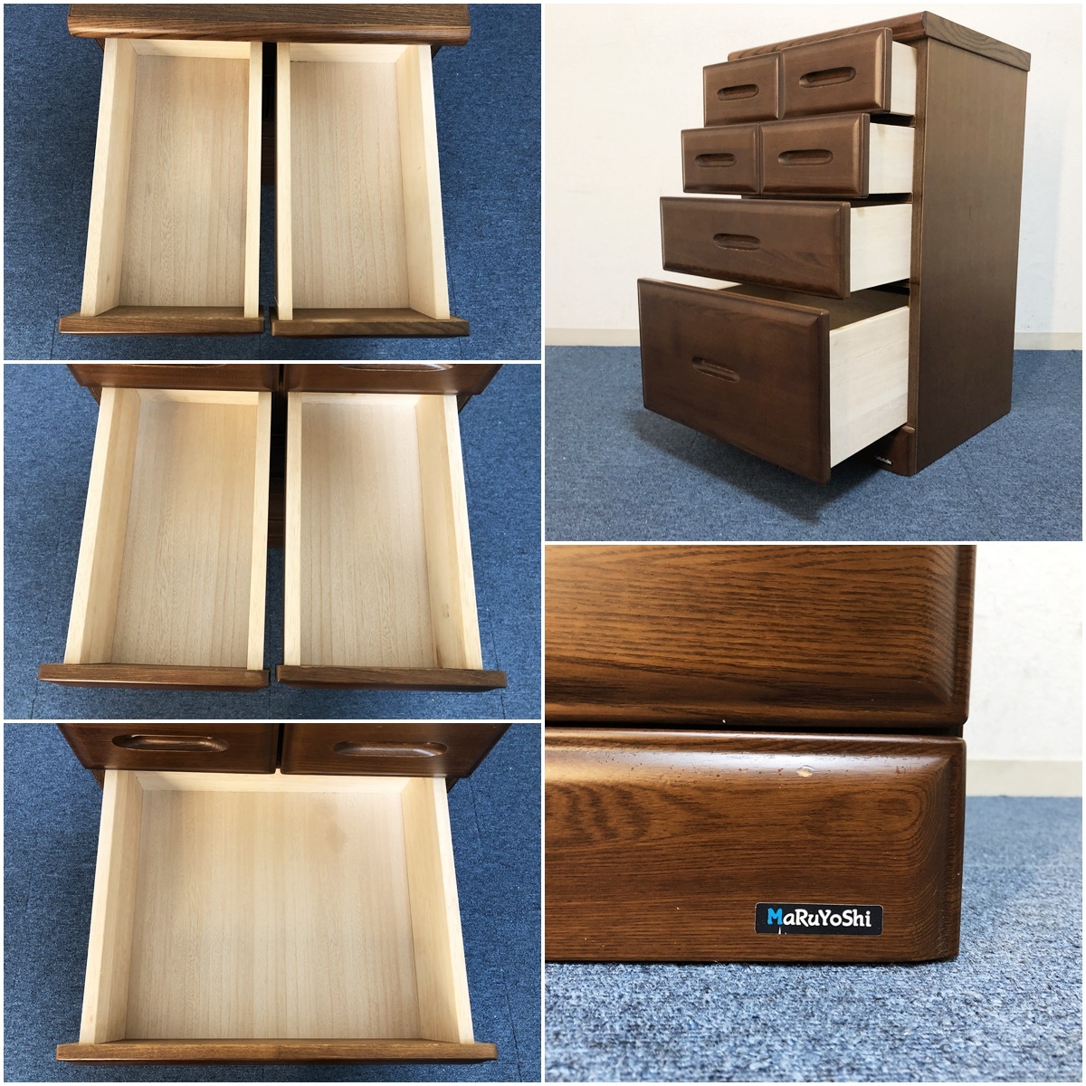 4段チェスト 天然木引出し・ウレタン樹脂塗装 マルヨシ民芸家具 MADE IN JAPAN ミニチェスト 【商品詳細】 ■本体サイズ:幅450×奥行420×高さ770mm ■小引出しサイズ:幅160×奥行340×高さ90mm×4杯 ■大引出しサイズ:幅370×奥行340×高さ110/180mm ※採寸は目安程度でお考え頂き多少の誤差は了承願います。 ■主観になりますがキレイです、個人差が御座います画像にて判断願います。 ■深みのあるブラウンは、上質な空間を演出してくれます。 ■和室はもちろん洋室にも合うデザインです。 ■材質:引出し前板天然木・他プリント紙化粧合板 ■メーカー:MARUYOSHI(マルヨシ民芸家具) ■品名/型番:ヨーデル45-4 ■カラー:ブラウン ■掲載しております物以外の付属品は御座いません。 ■擦れ・小傷は御座います、気になさる方はご遠慮ください。 ■他気になる事など御座いましたらお気軽に質問下さい。 (注意) 環境、モニター画面等により色合いが異なります。 【商品管理番号】384 |