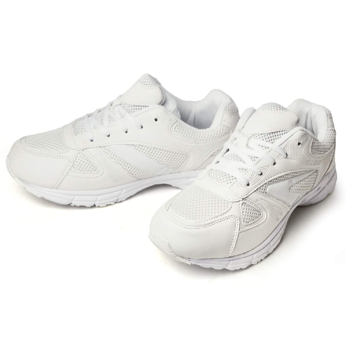 男女兼用 白 運動靴 幅広 ワイド 3EEE 軽量 スニーカー スポーツ 学生靴 部活 通学 紐靴 レディース キッズ 白靴 16249
