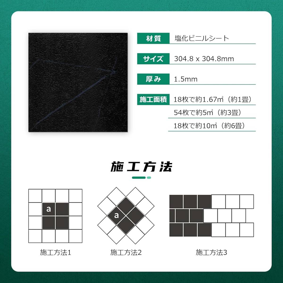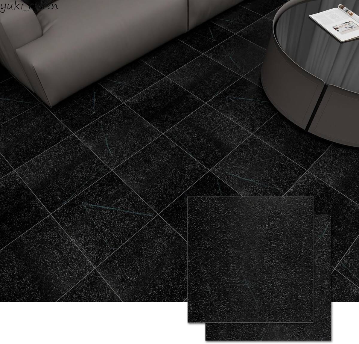 フロアタイル 18枚/約1畳分(大理石調)ブラック フローリングシート 置くだけ 接着剤不要 クッションフロア 床材