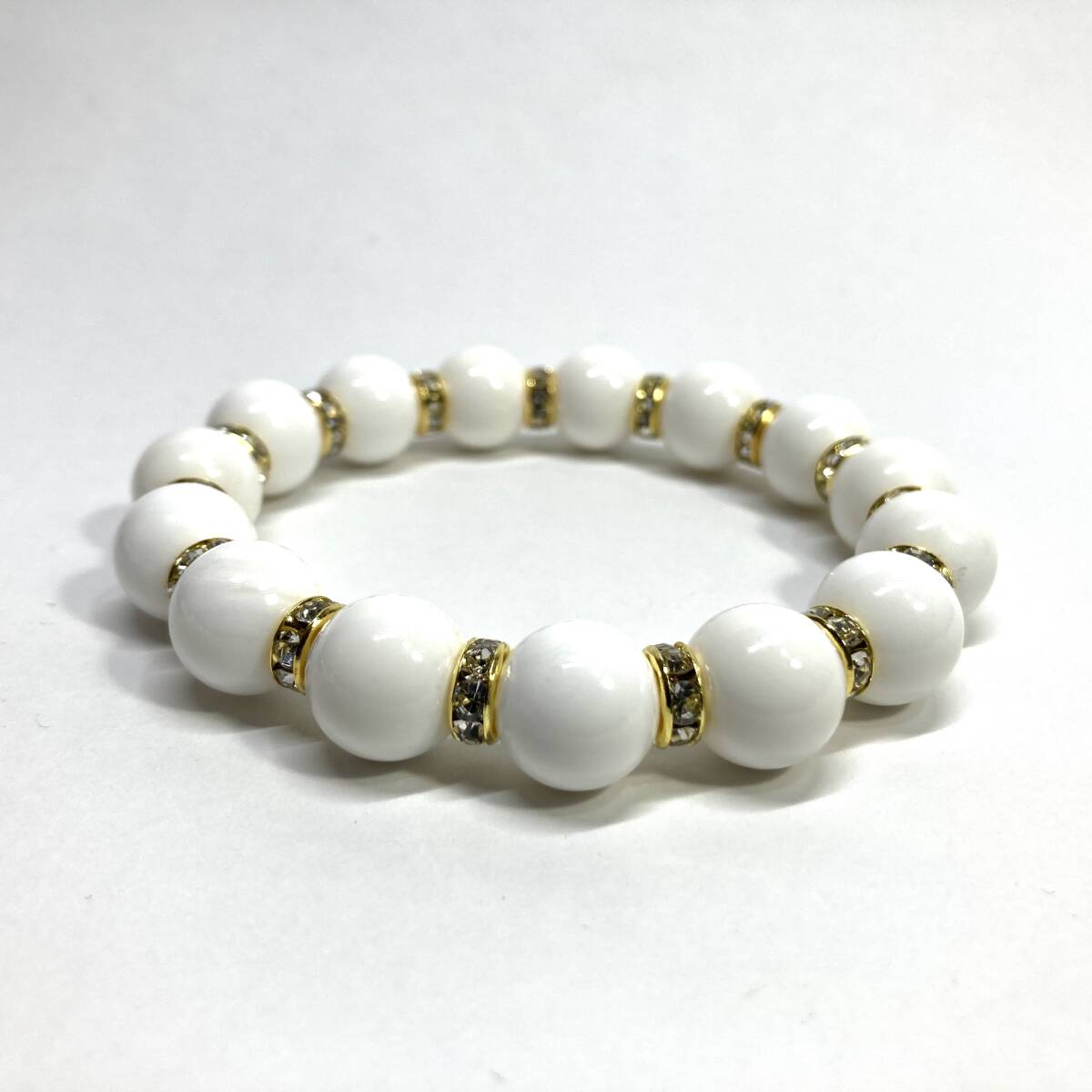 ホワイトオニキス パワーストーン ブレスレット (ロンデル:ゴールド) 12mm メンズ・レディース 天然石ブレス