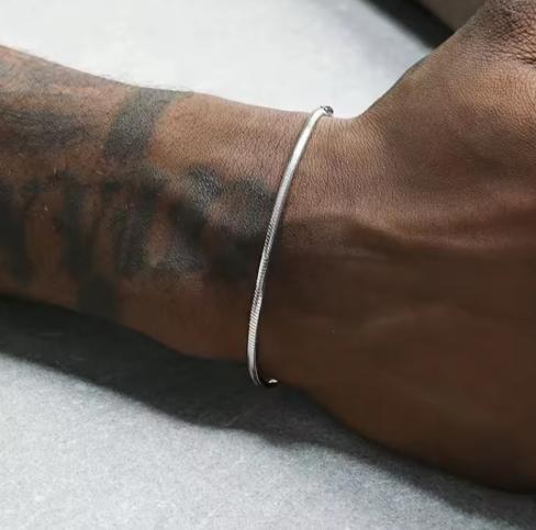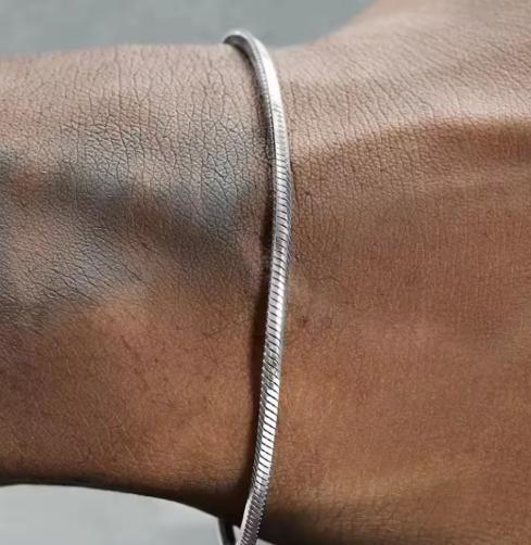 1044★新品未使用★S925 刻印有 シルバー ブレスレット 21㎝ バングル シンプル 男女兼用 ストリート ロック パンク メンズ チェーン 喜平