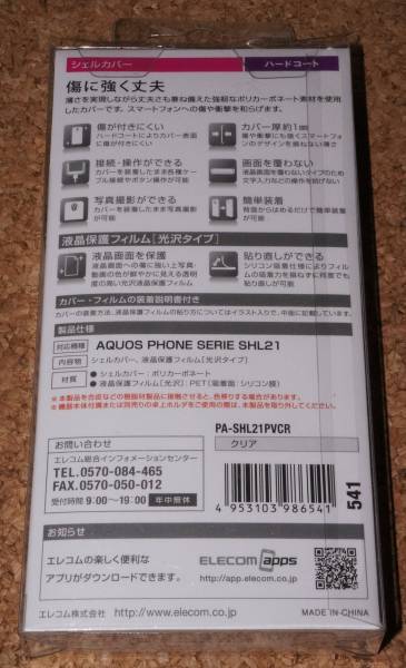 ELECOM for AQUOS PHONE SERIE SHL21 au シェルカバー 新品・未使用です。