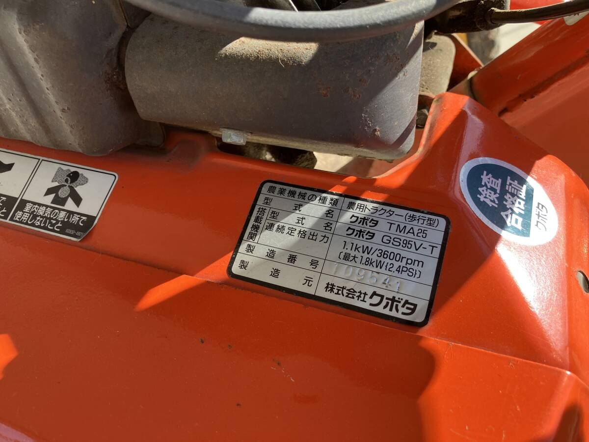 クボタ 耕運機 TMA25 動作OK 引取り限定です。