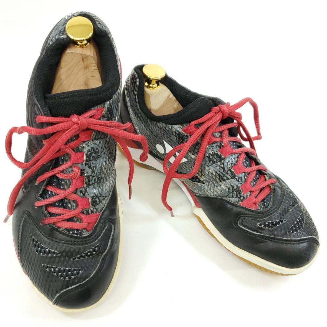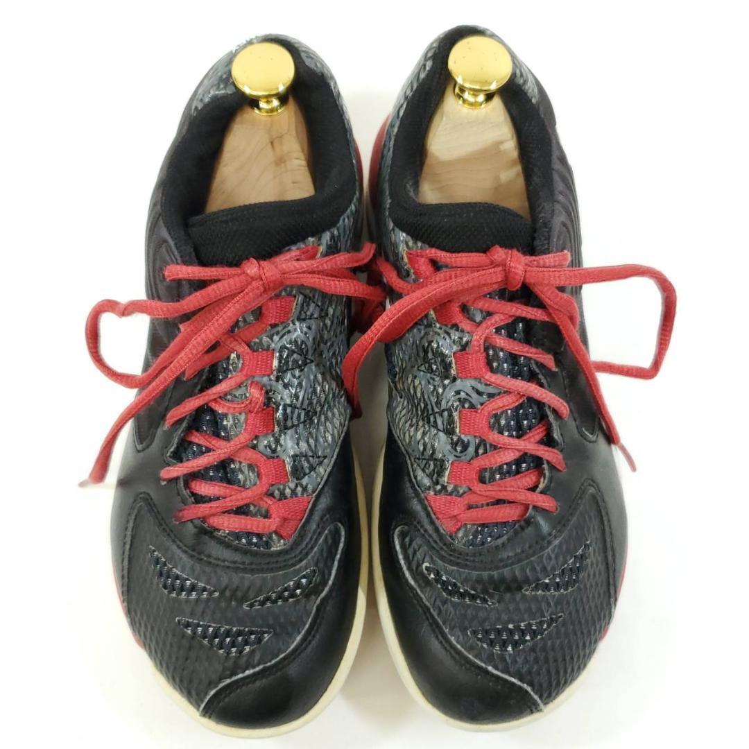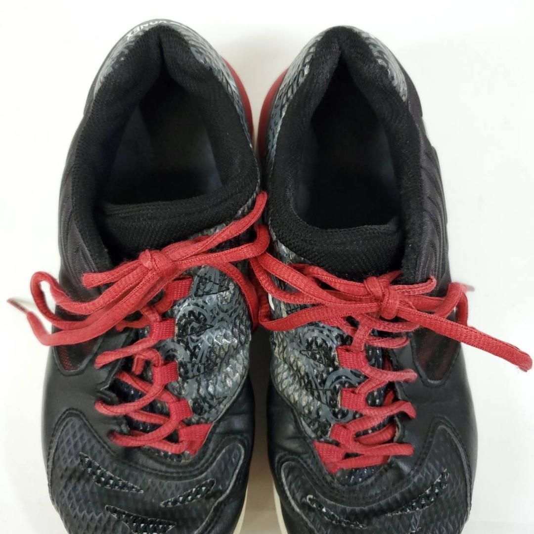 ブラック×レッド×グレーのトライカラーが、コート上でも映えるスタイリッシュな一足。